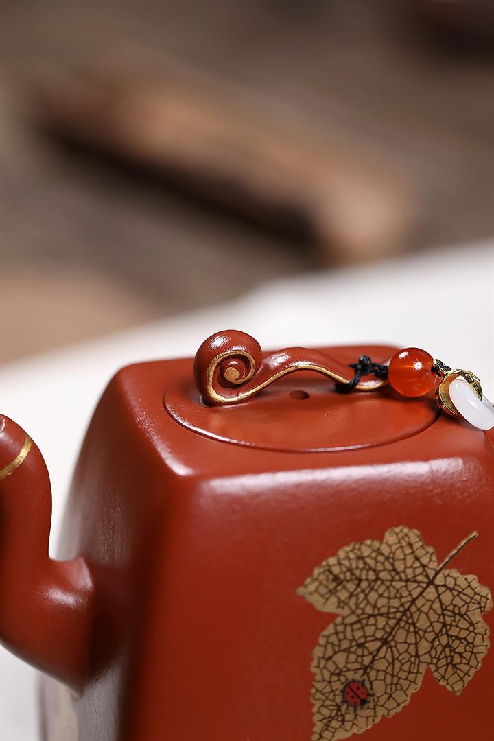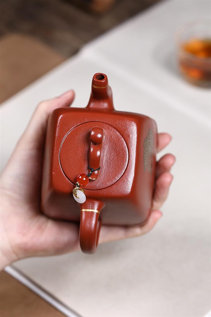 原礦大紅袍朱泥四方如意茶壺POT7618