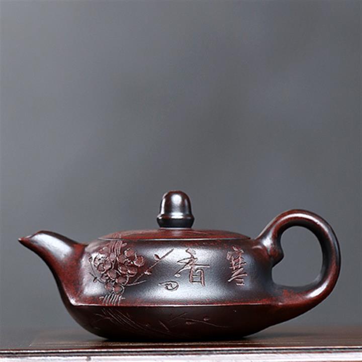 原礦鐵血紅砂刻字寒江茶壺POT7627