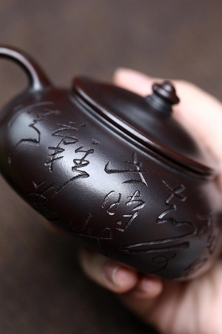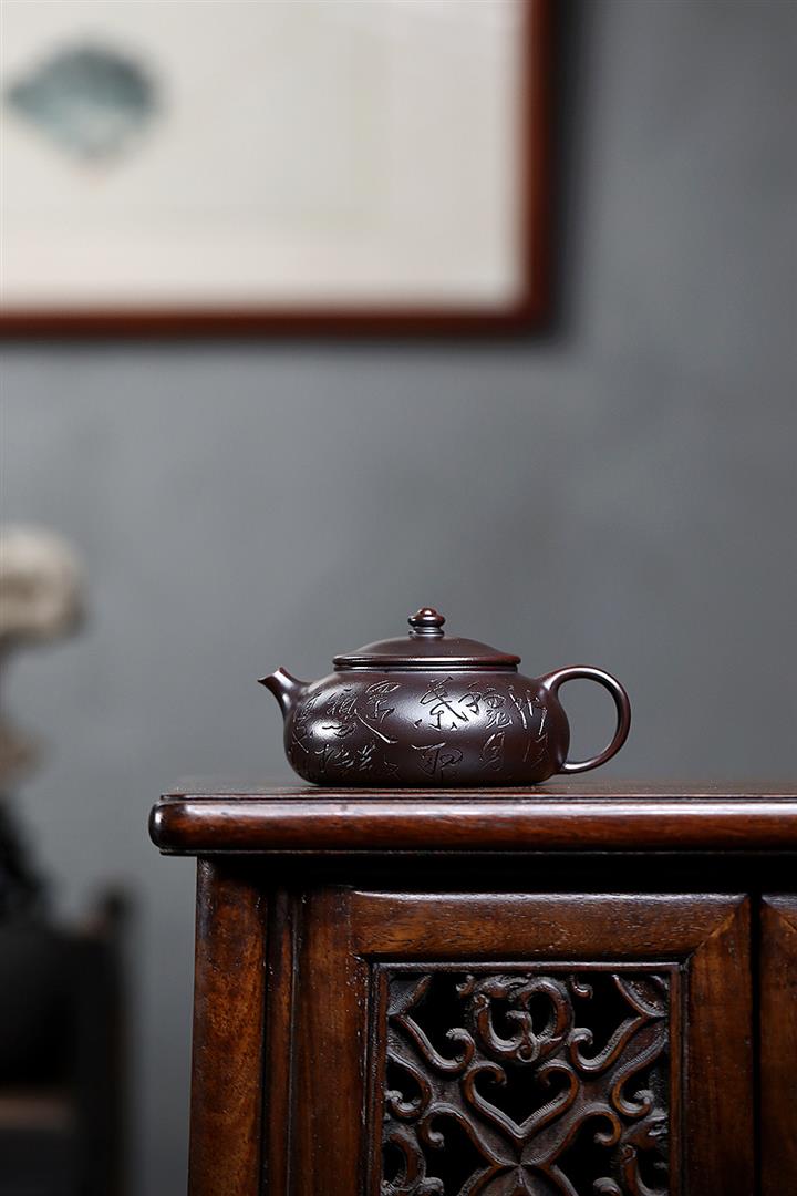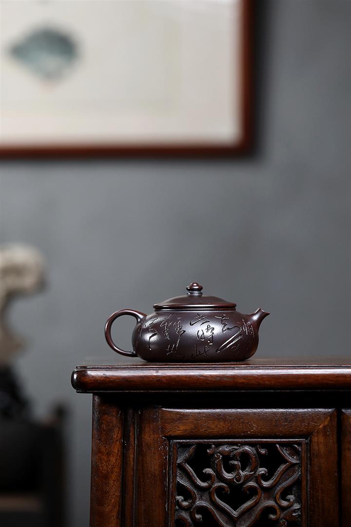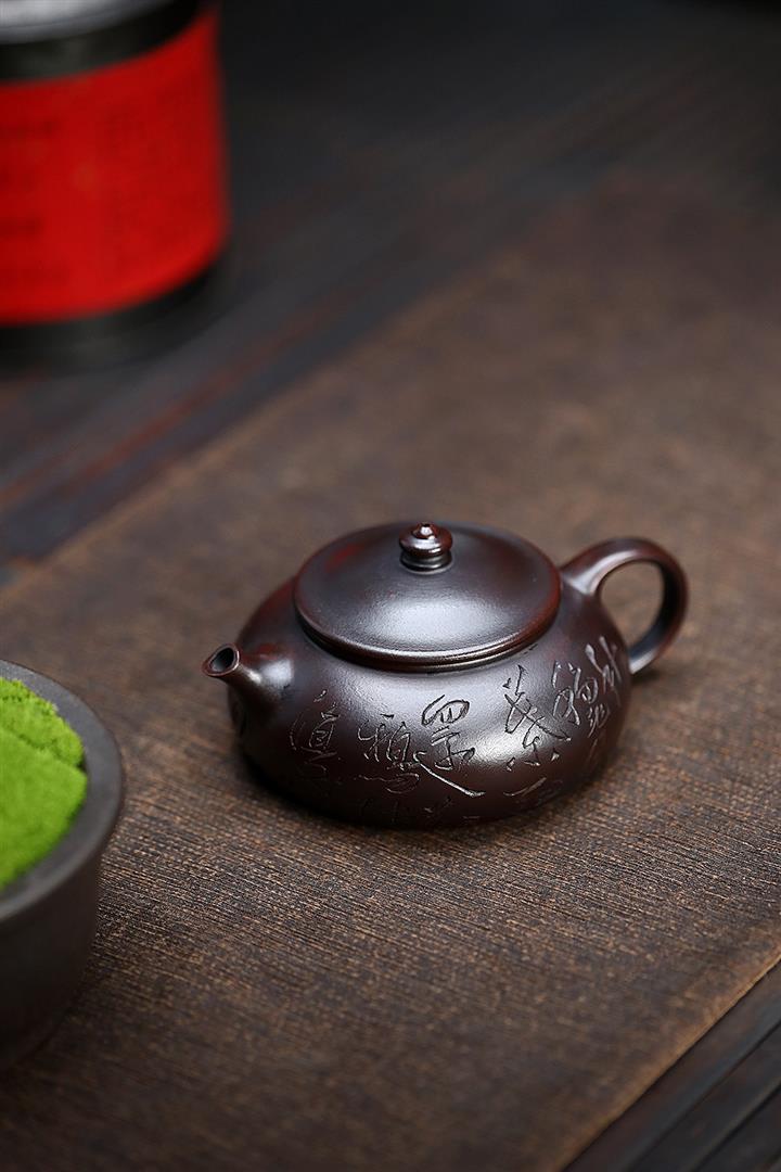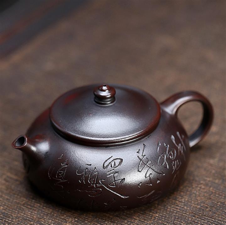原礦鐵血紅砂刻字寒江茶壺POT7627