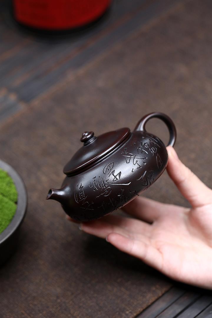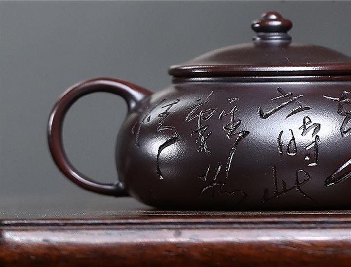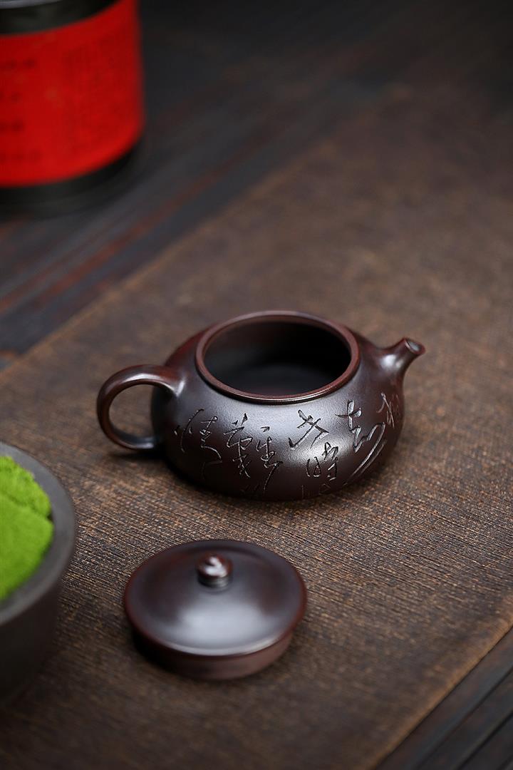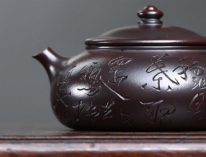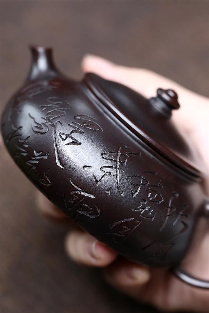 原礦鐵血紅砂刻字寒江茶壺POT7627