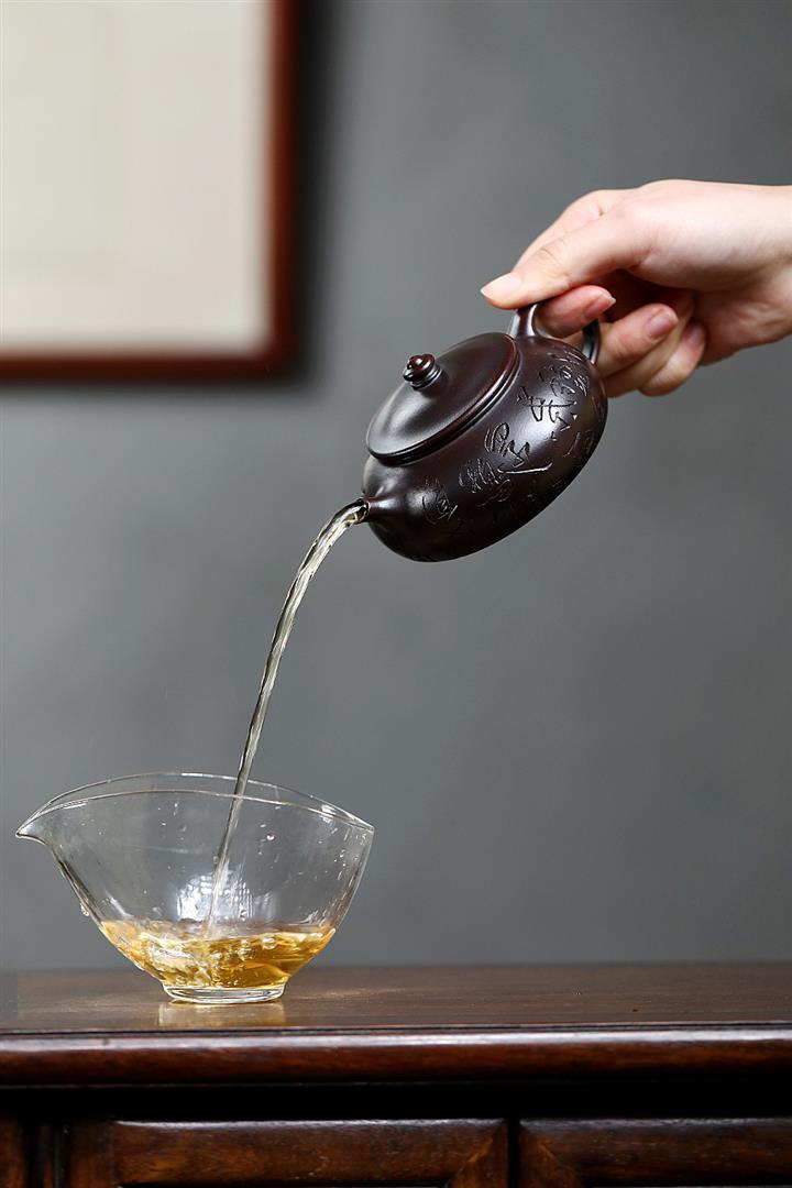 紫砂使用越久,壺身色澤越發光亮照人,氣韻溫雅。紫砂壺長久使用器身會因撫摸擦拭,變得越發溫潤光澤!
