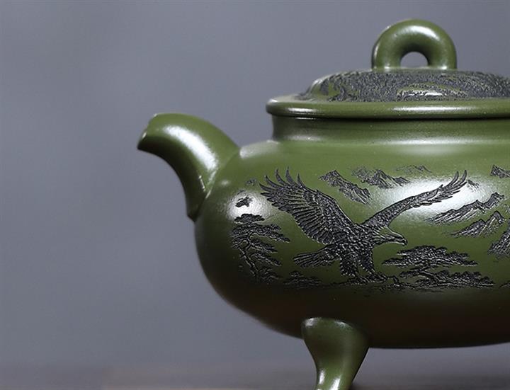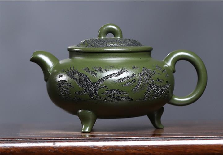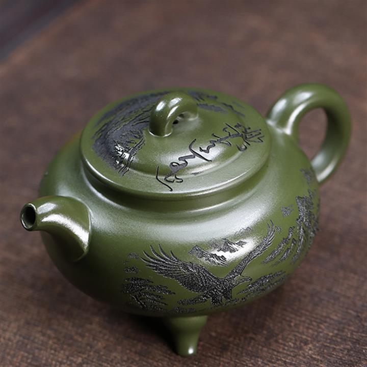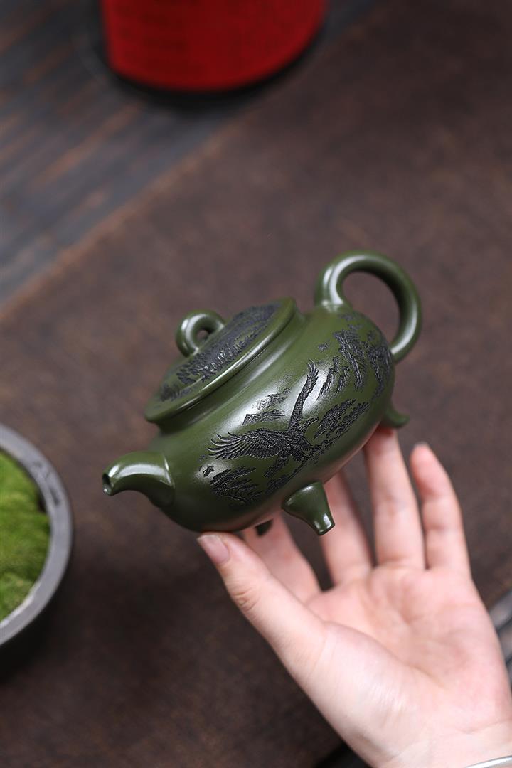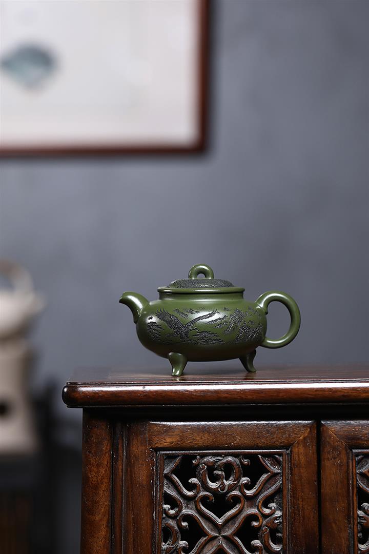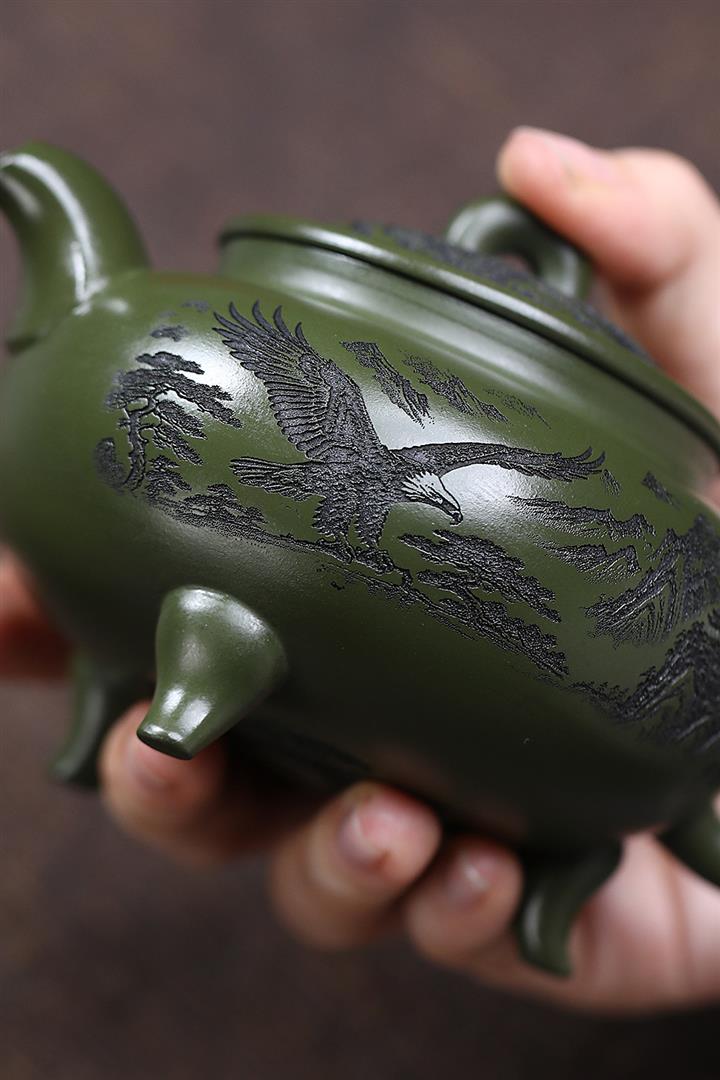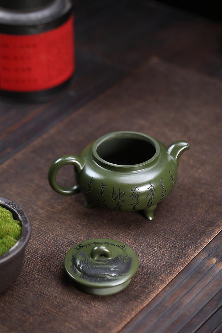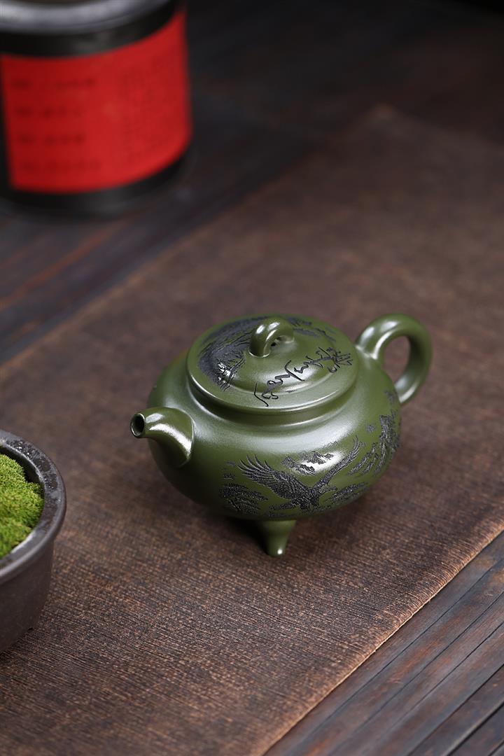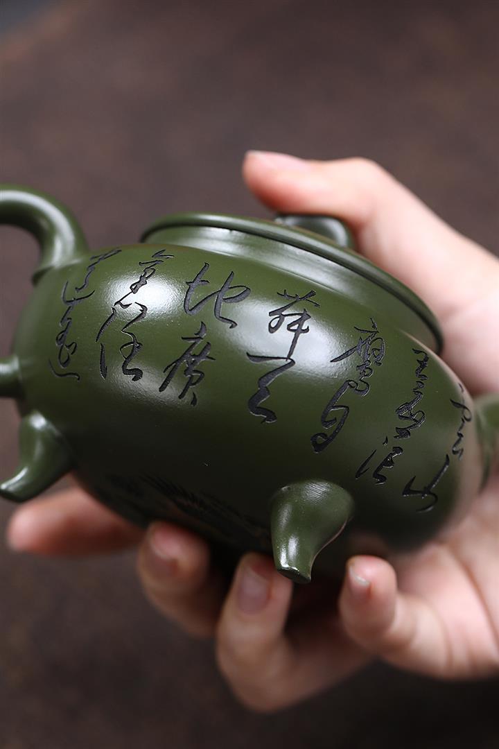 原礦綠泥樂逍遙三足鼎茶壺POT7628