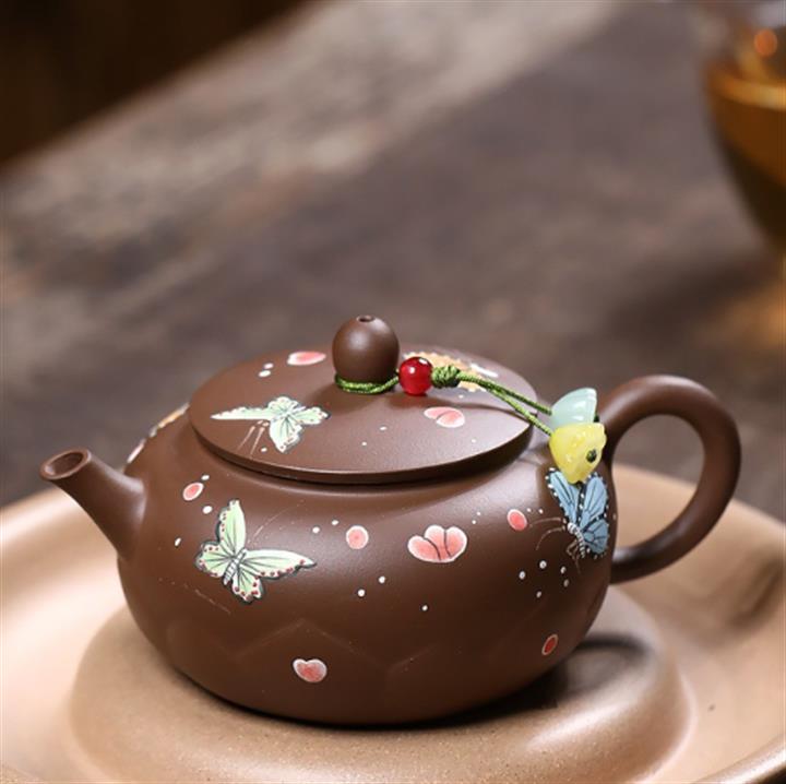 原礦赤金朱泥蝴蝶玉瓶茶壺POT7643