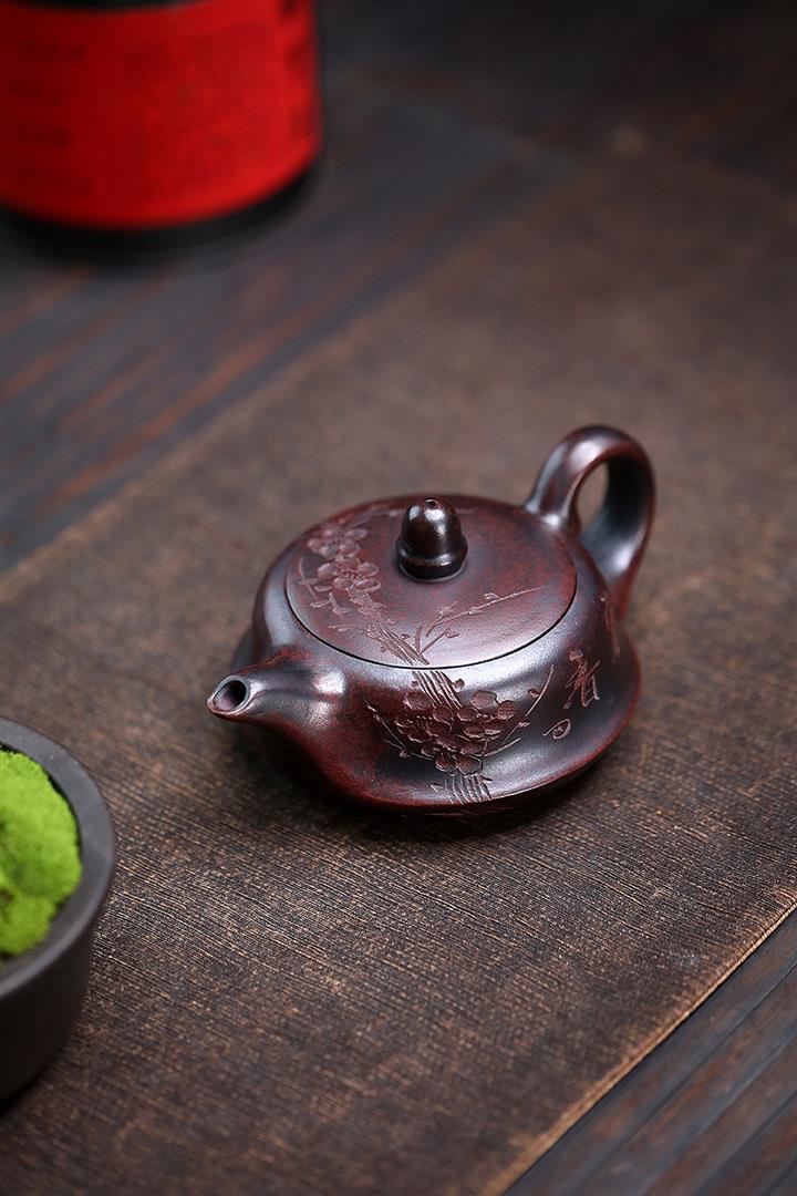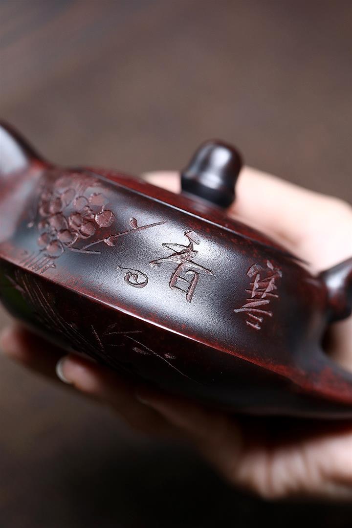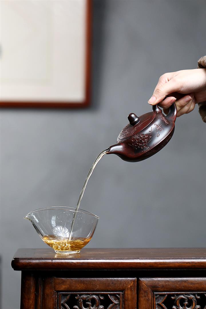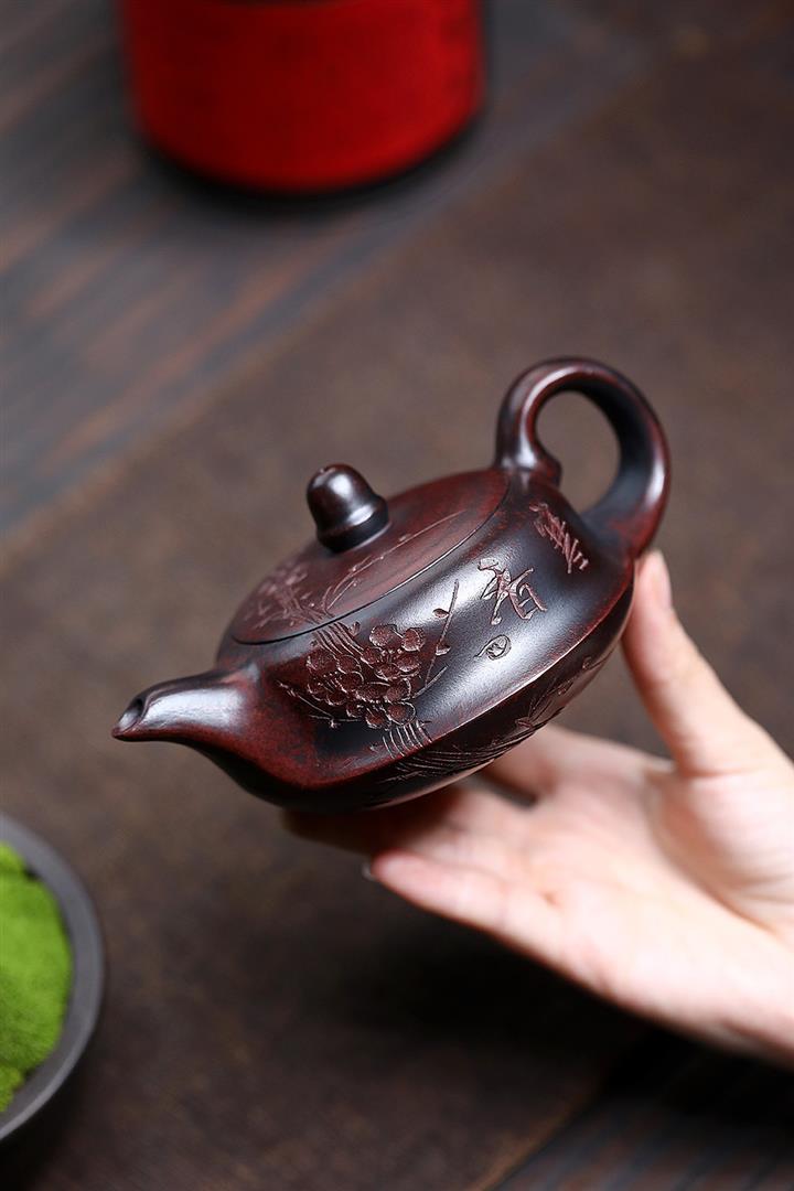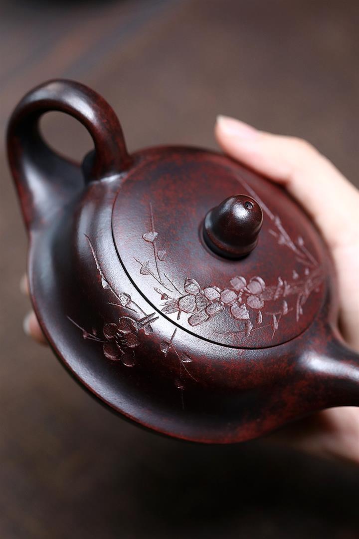 紫砂使用越久,壺身色澤越發光亮照人,氣韻溫雅。紫砂壺長久使用器身會因撫摸擦拭,變得越發溫潤光澤!