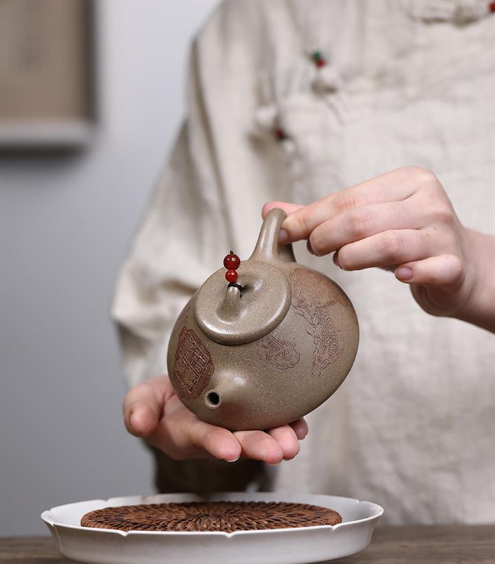 紫砂使用越久,壺身色澤越發光亮照人,氣韻溫雅。紫砂壺長久使用器身會因撫摸擦拭,變得越發溫潤光澤!
