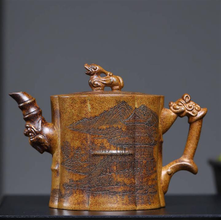 原礦龍骨金砂龍頭八卦壹捆竹茶壺POT7650
