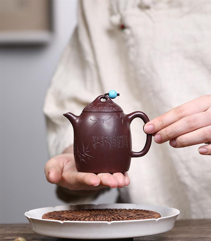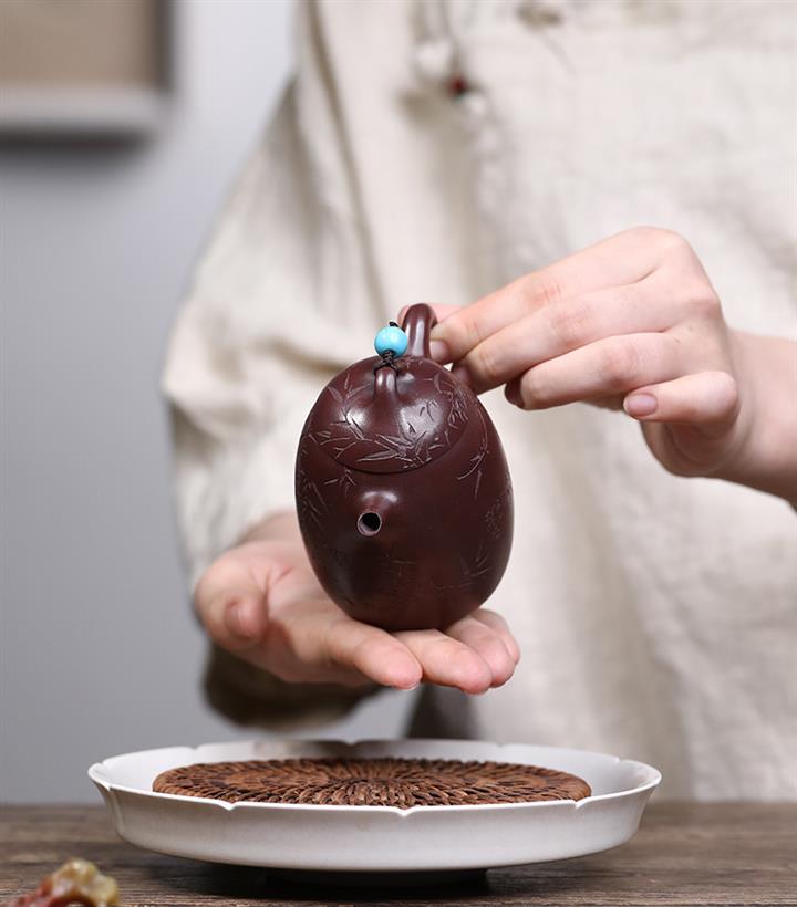 紫砂使用越久,壺身色澤越發光亮照人,氣韻溫雅。紫砂壺長久使用器身會因撫摸擦拭,變得越發溫潤光澤!