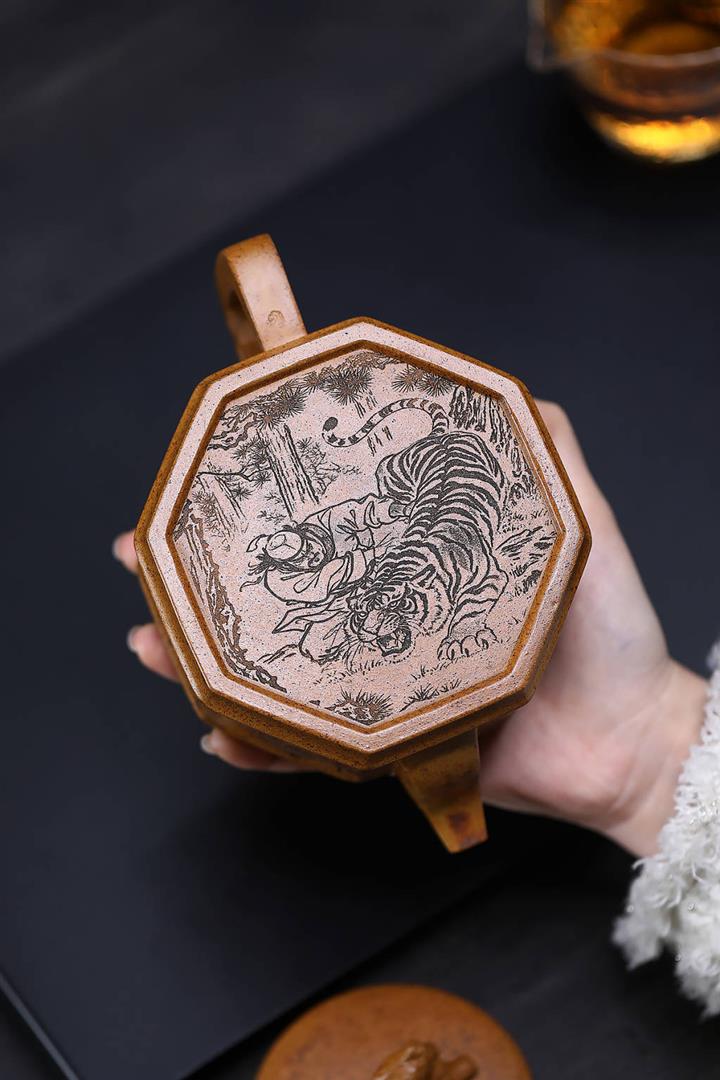 原礦龍骨金砂武松打虎茶壺POT7654