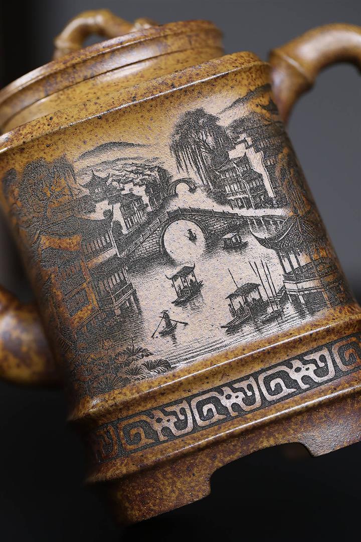 原礦龍血砂山水秦權秒幹茶壺POT7662