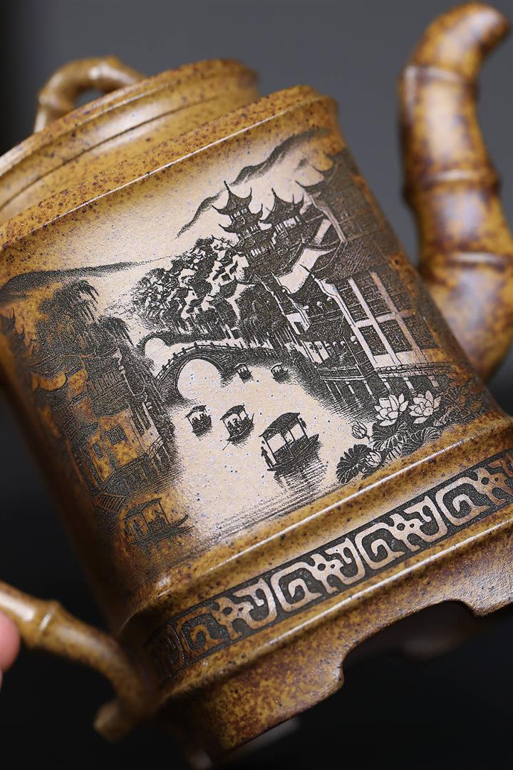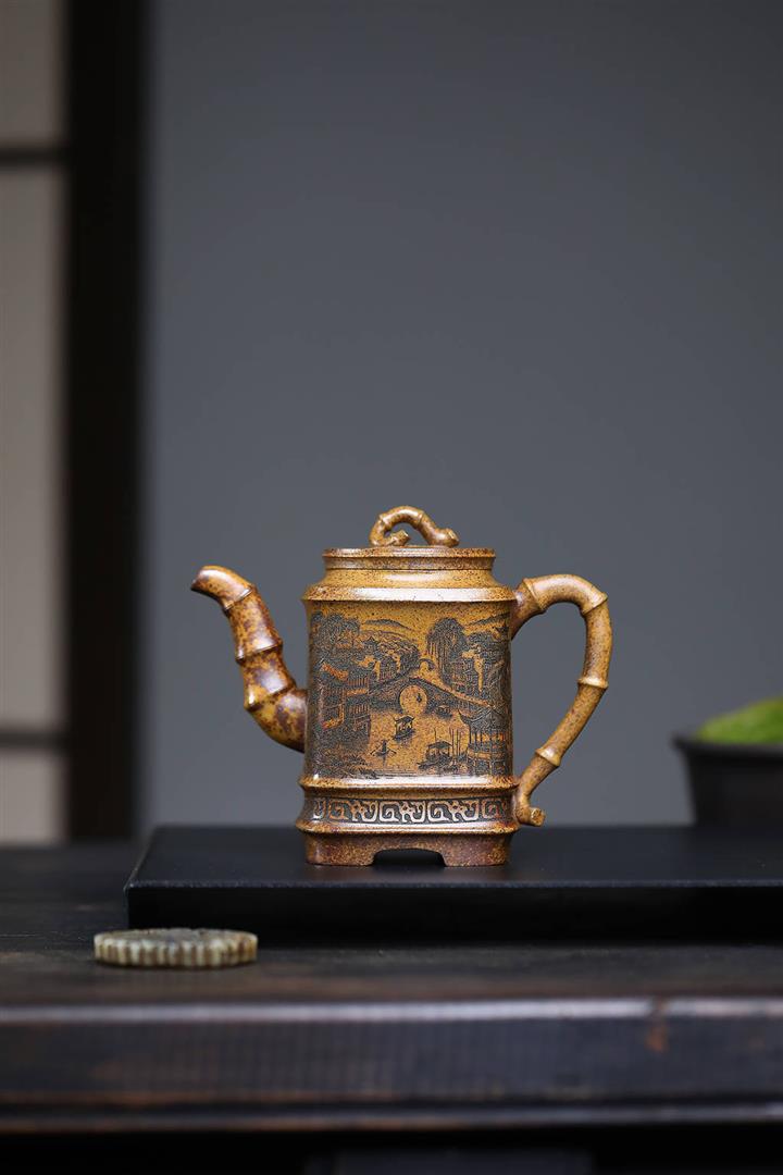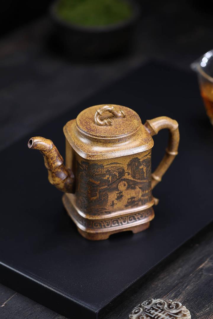 原礦龍骨金砂四方竹段茶壺POT7657