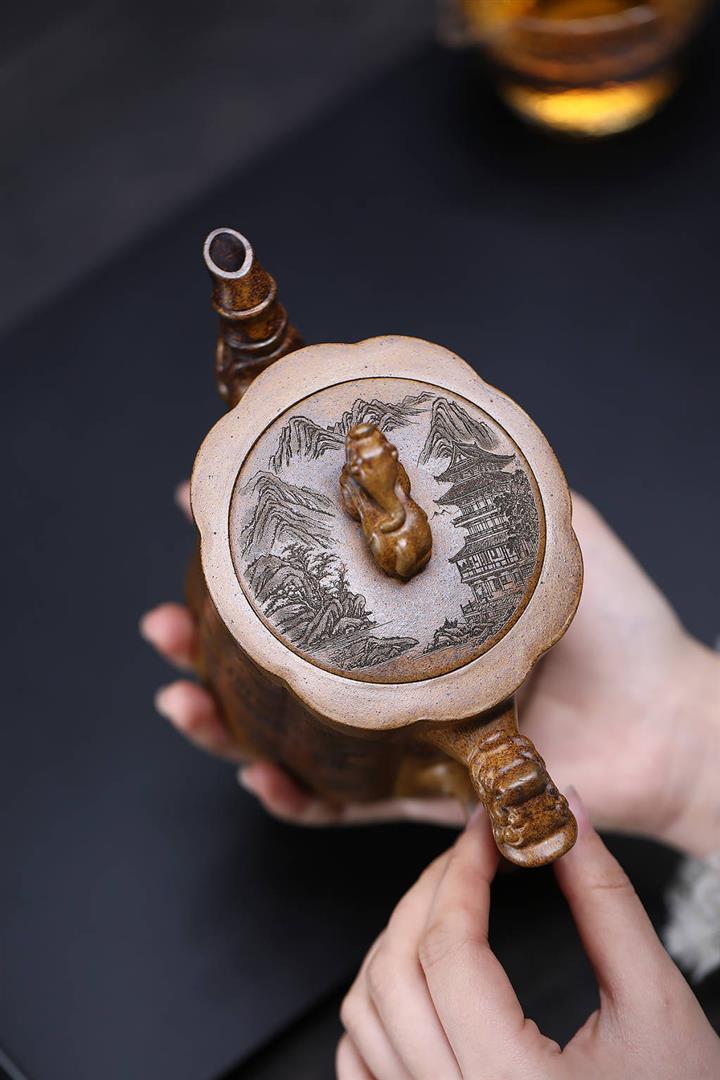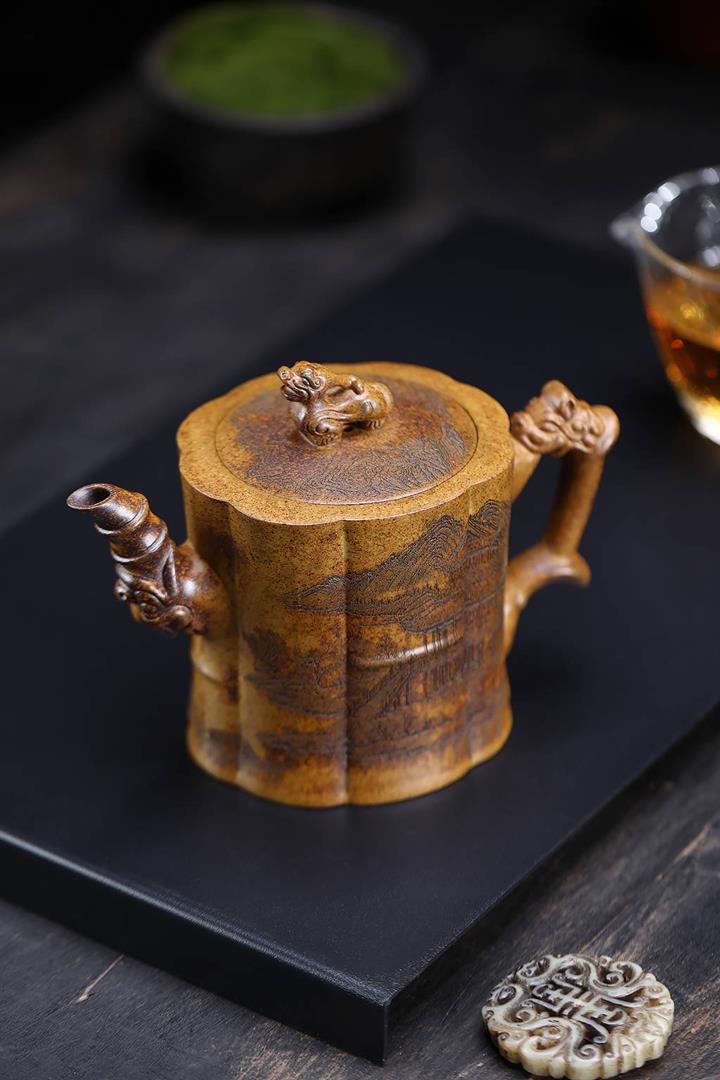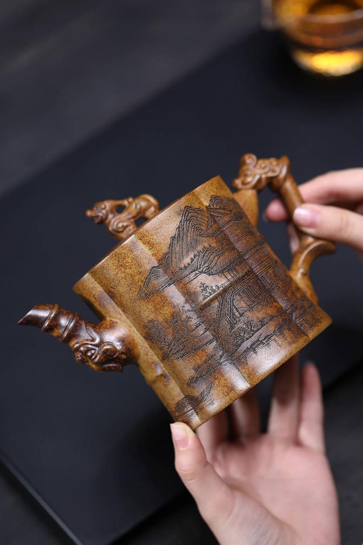 原礦龍血砂山水秦權秒幹茶壺POT7662