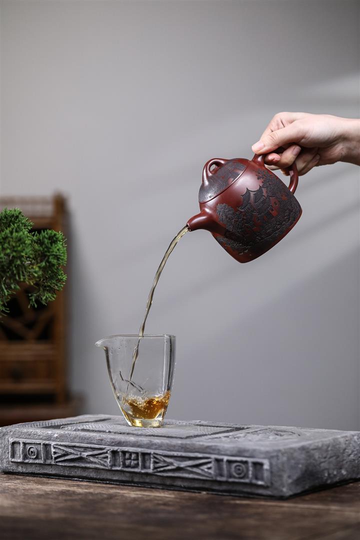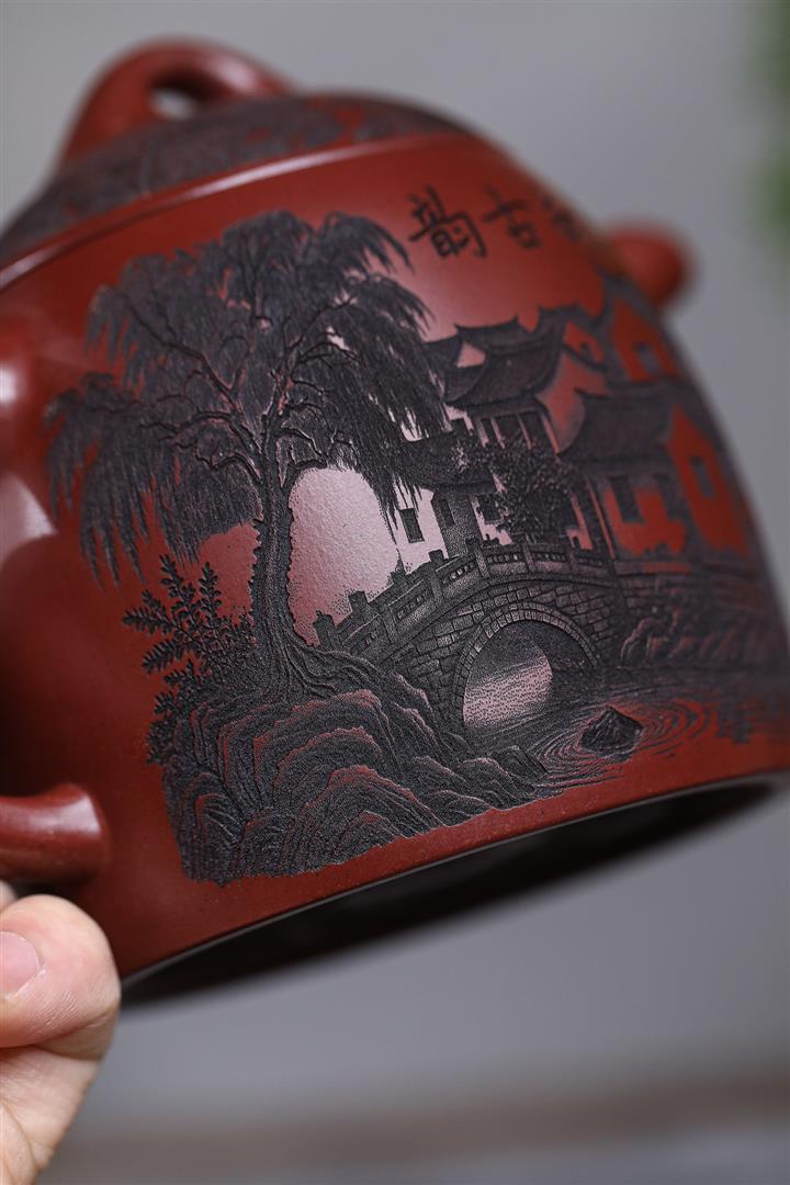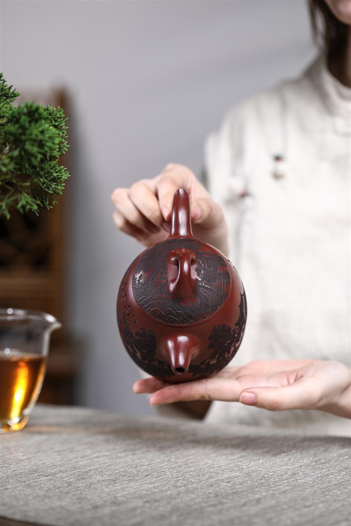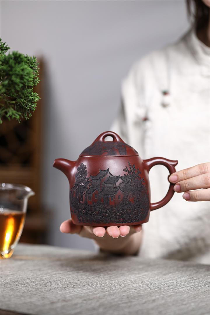 原礦龍血砂山水秦權秒幹茶壺POT7662