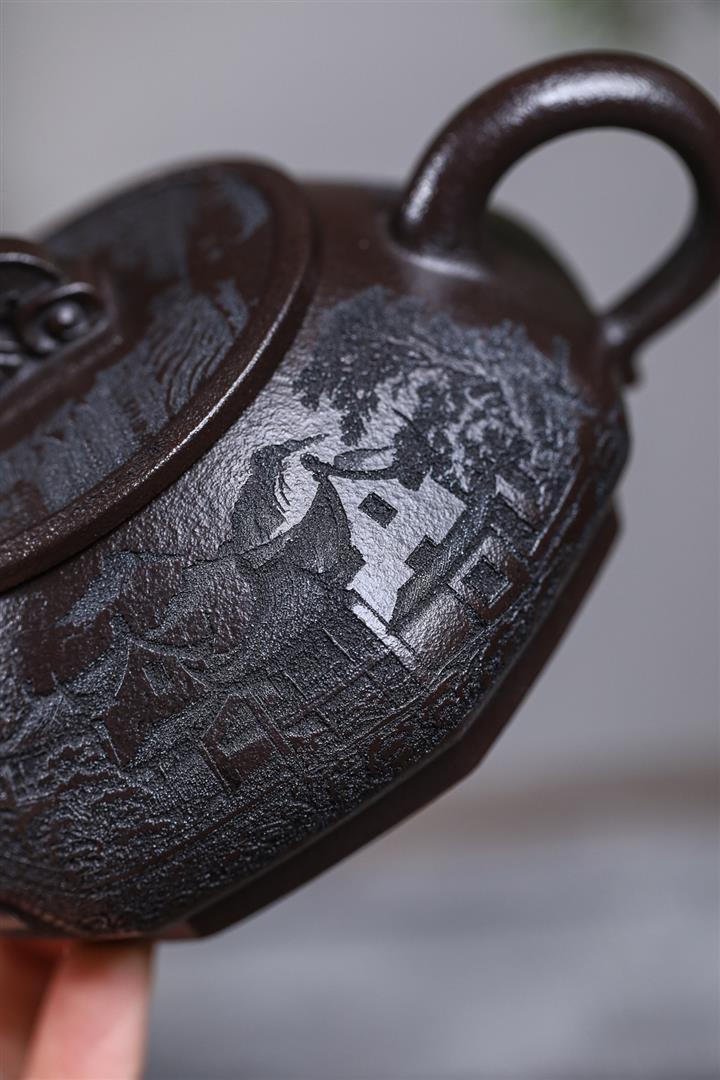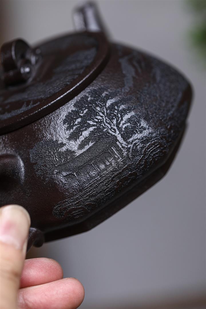 原礦焐灰大紅袍刻字漢鐸茶壺POT7671