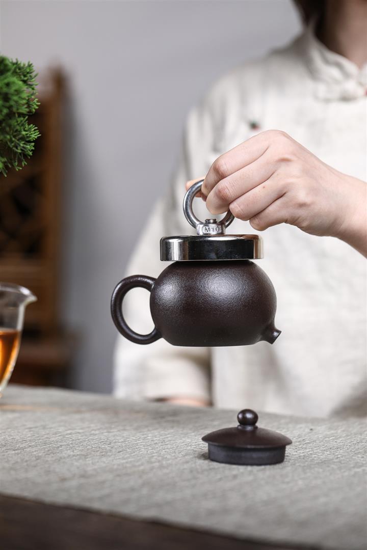 原礦黑料石黃河豚西施磁吸茶壺POT7666