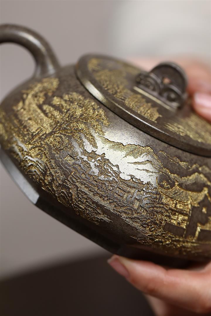 原礦赤金朱泥如意漢瓦茶壺POT7676