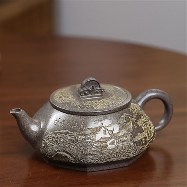 原礦龍背青金刻橋瓢茶壺POT7667