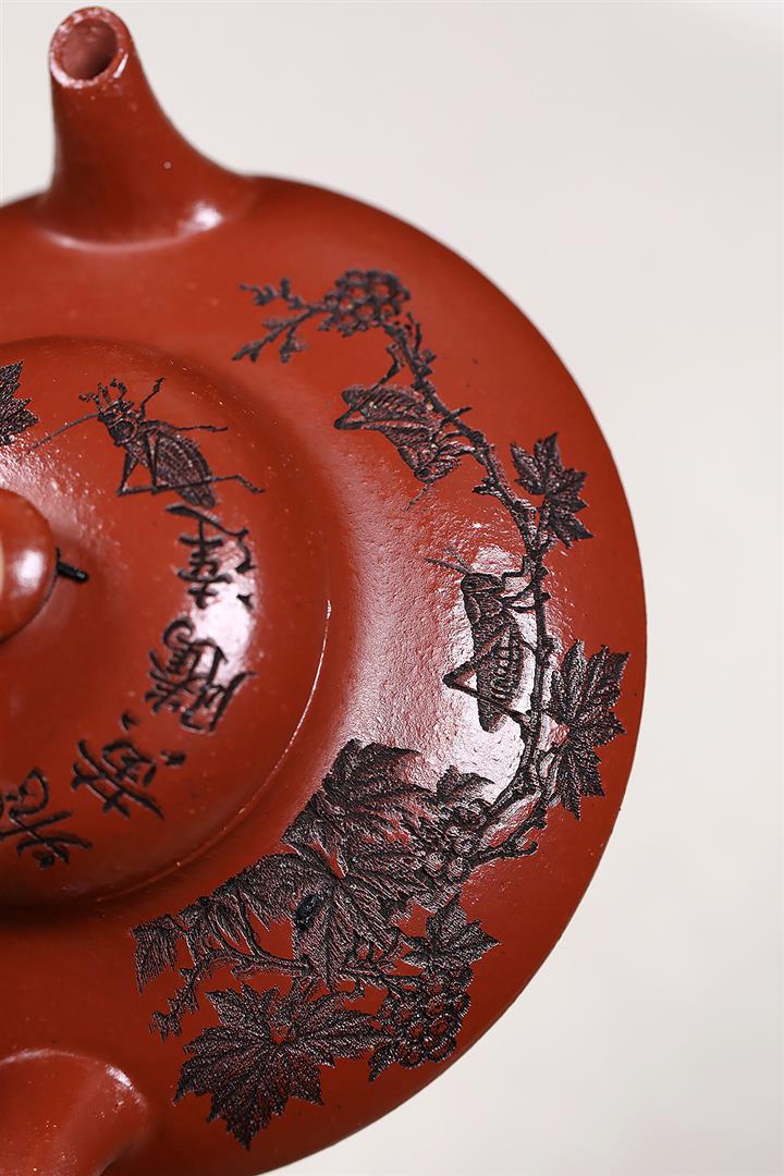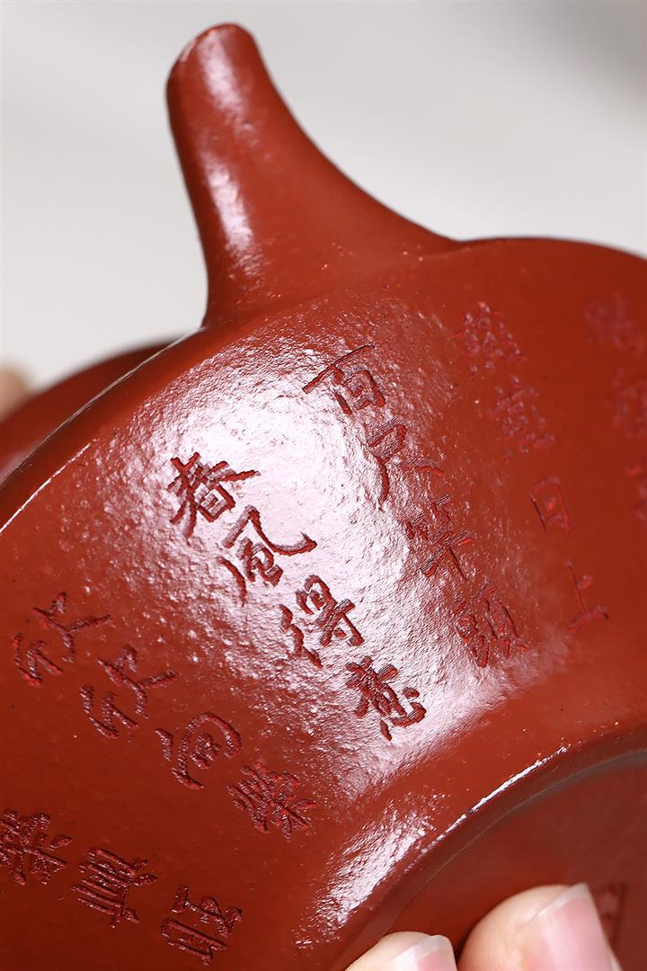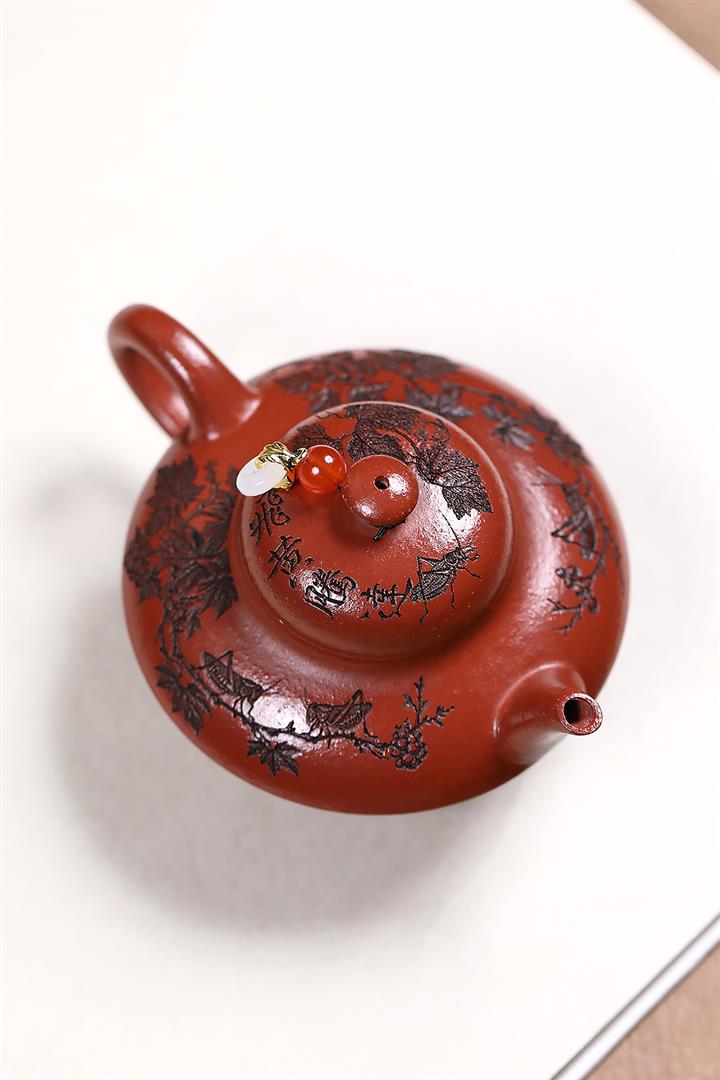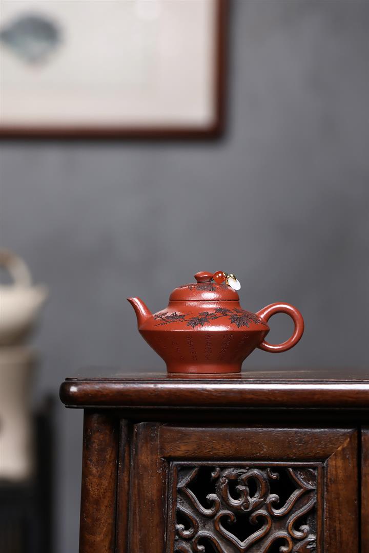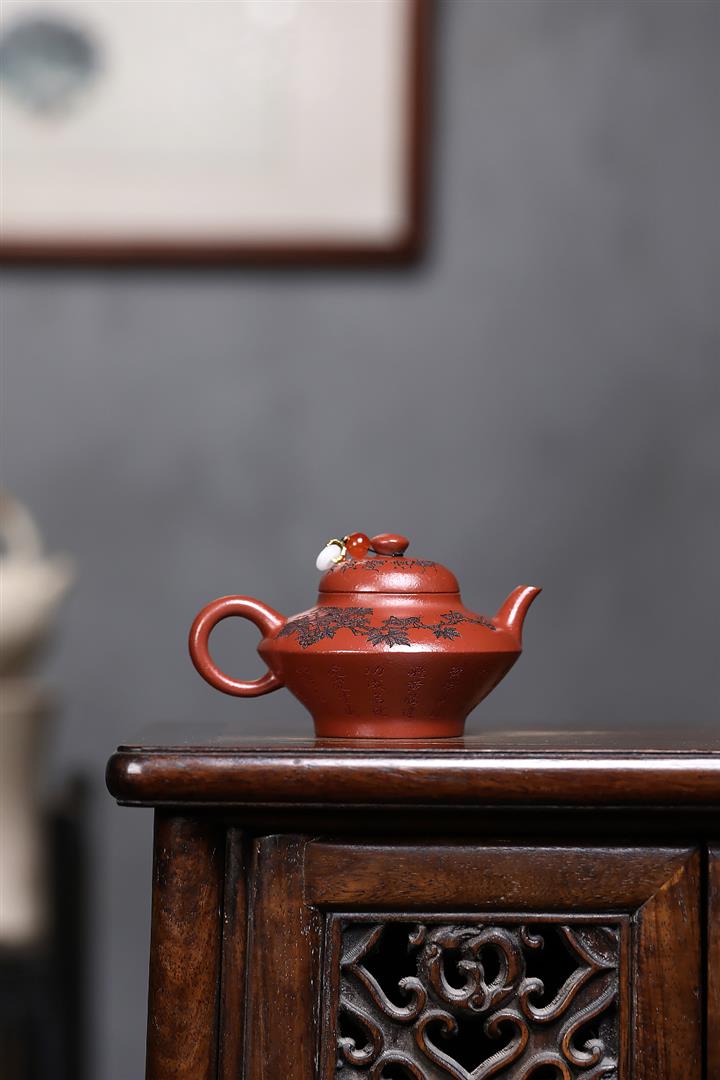 原礦秒幹龍血砂山水扁晨茶壺POT7686