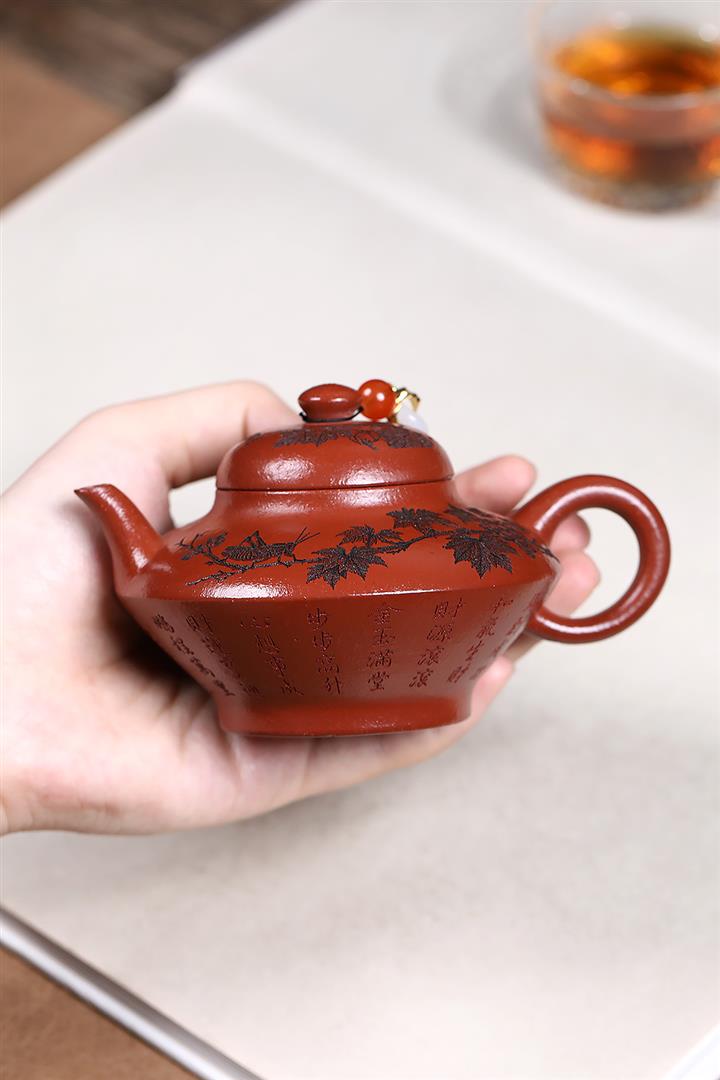 紫砂使用越久,壺身色澤越發光亮照人,氣韻溫雅。紫砂壺長久使用器身會因撫摸擦拭,變得越發溫潤光澤!