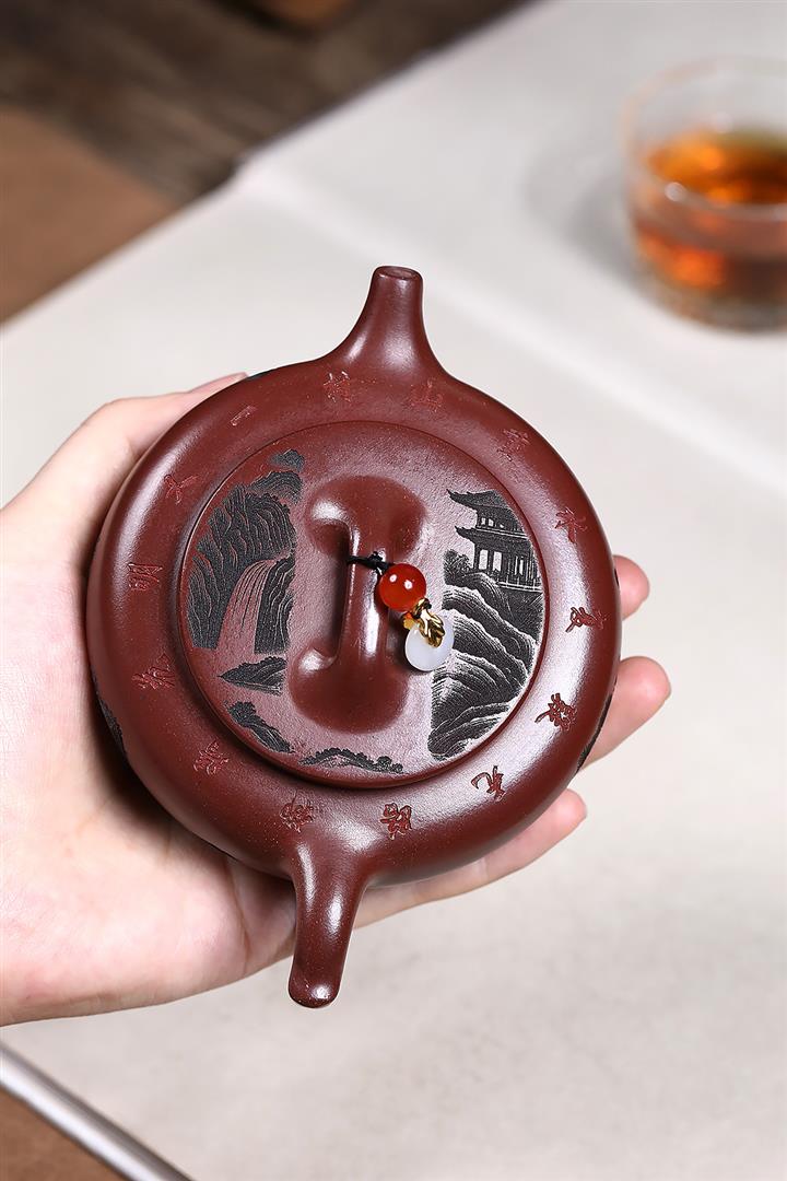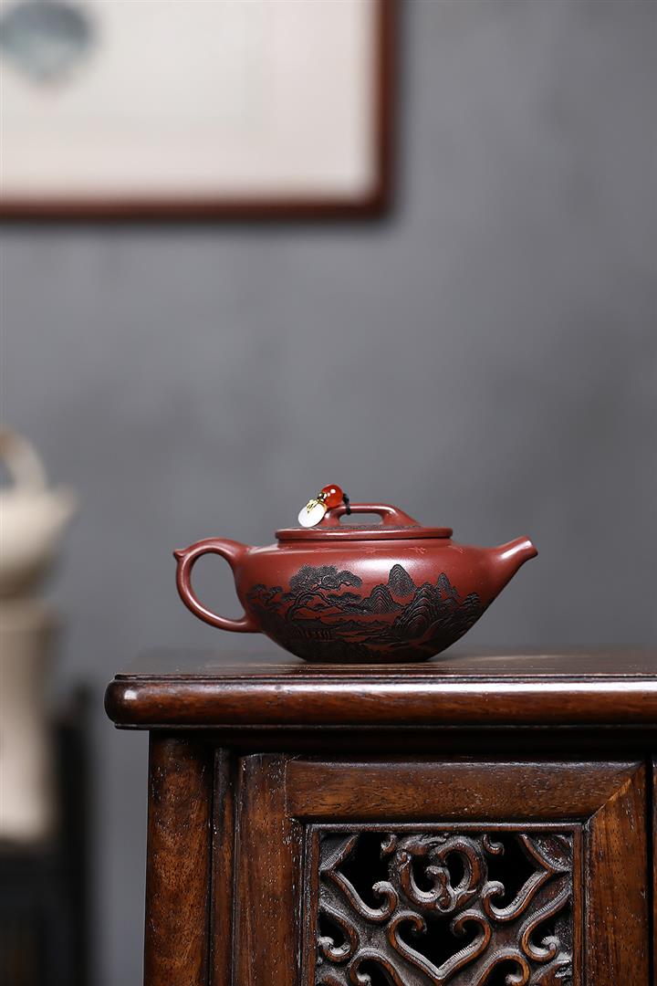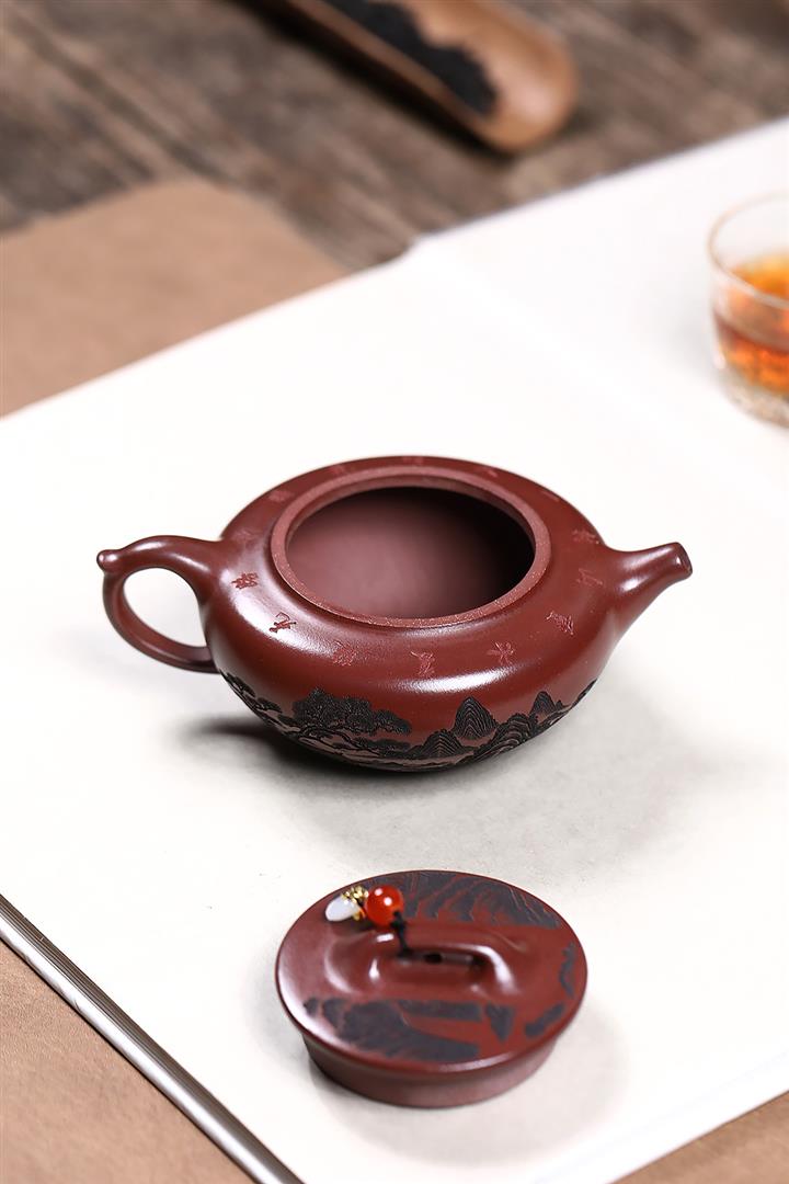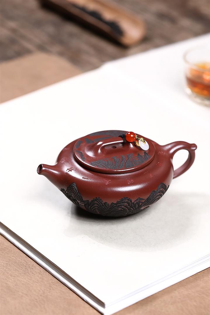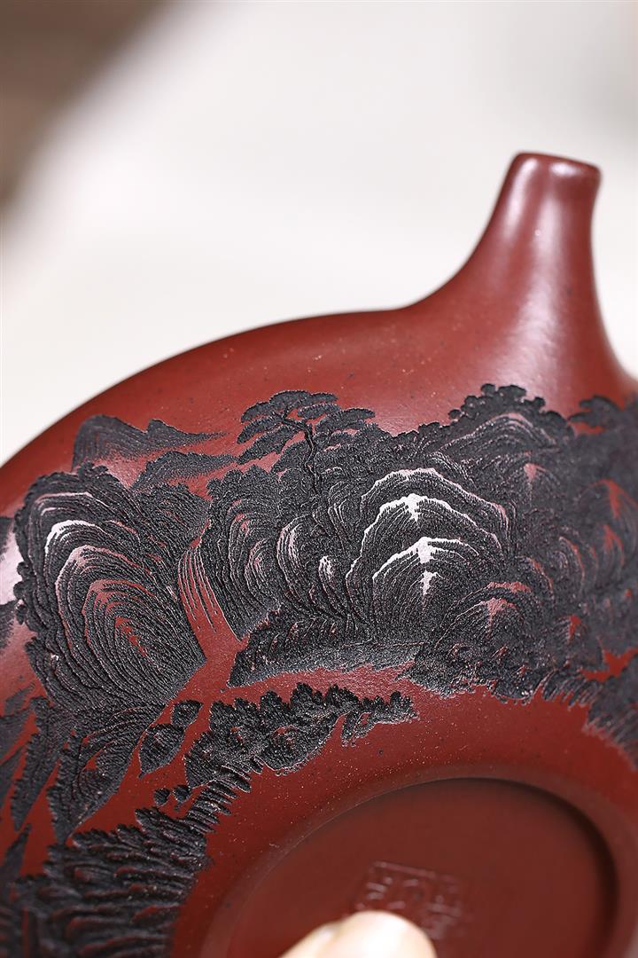 原礦秒幹龍血砂山水扁晨茶壺POT7686