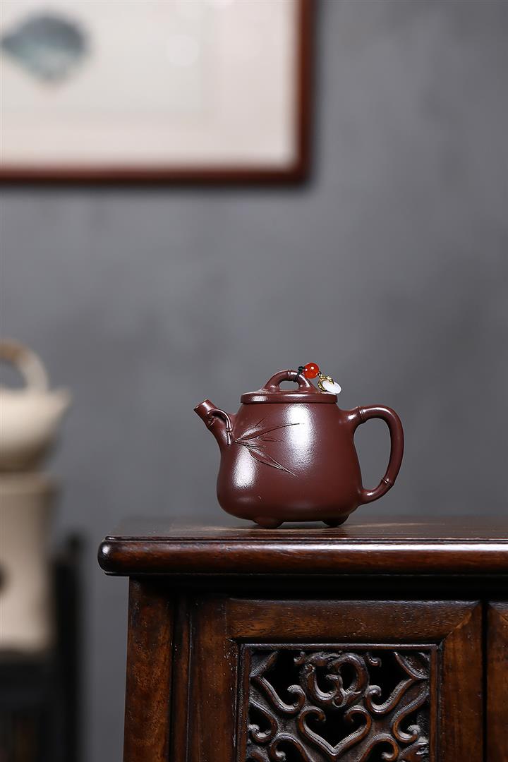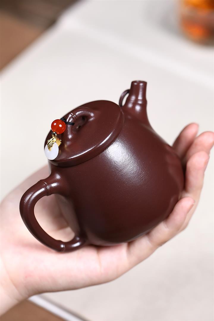 紫砂使用越久,壺身色澤越發光亮照人,氣韻溫雅。紫砂壺長久使用器身會因撫摸擦拭,變得越發溫潤光澤!