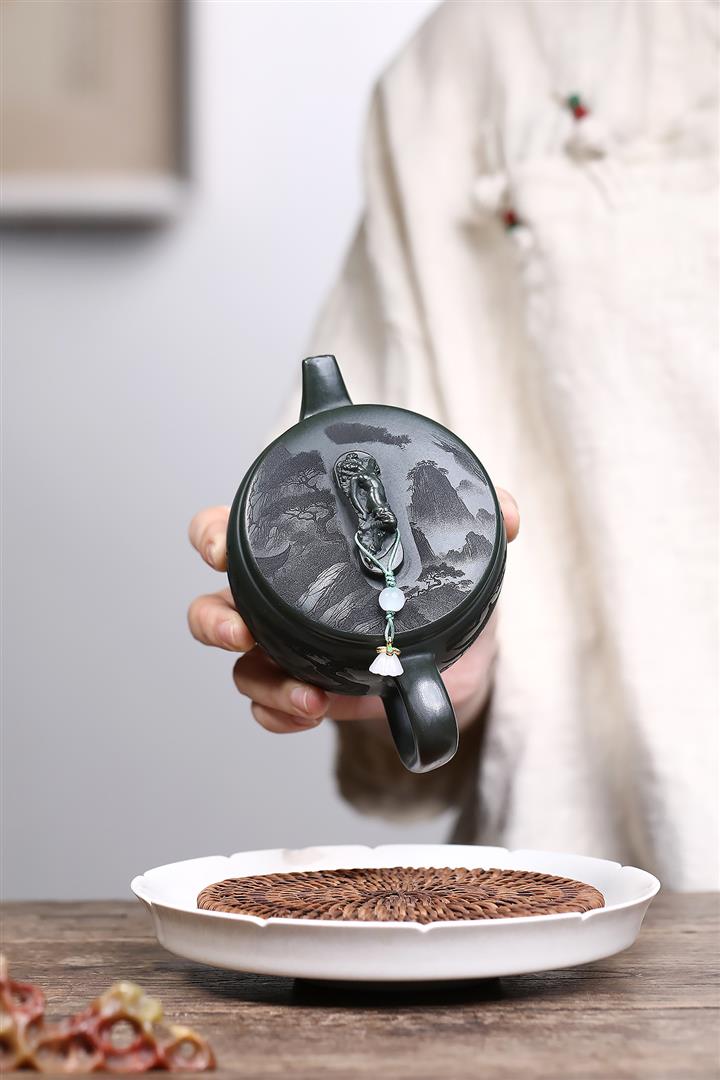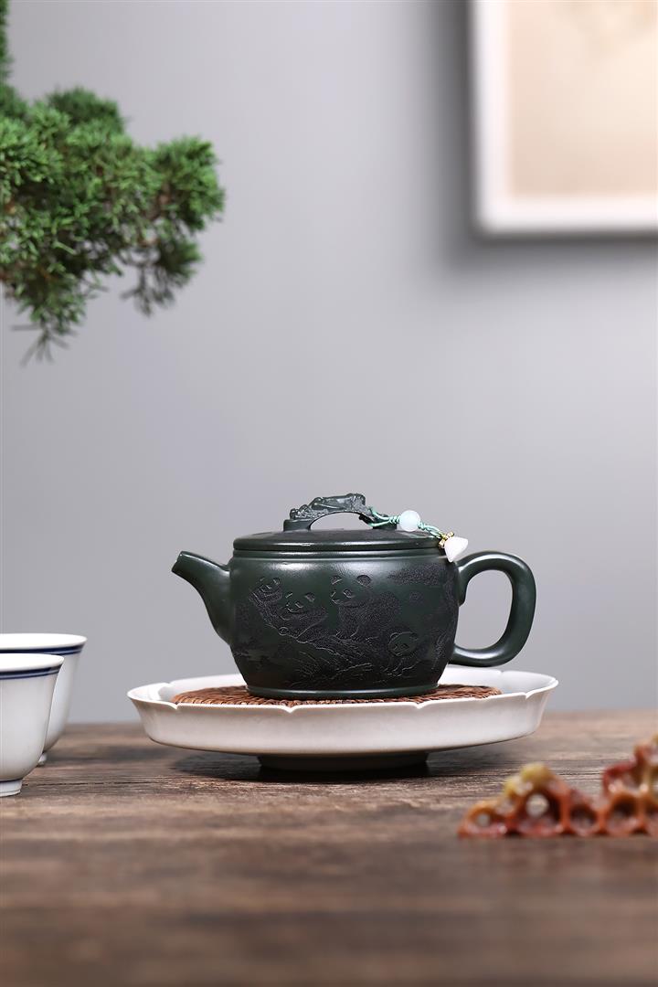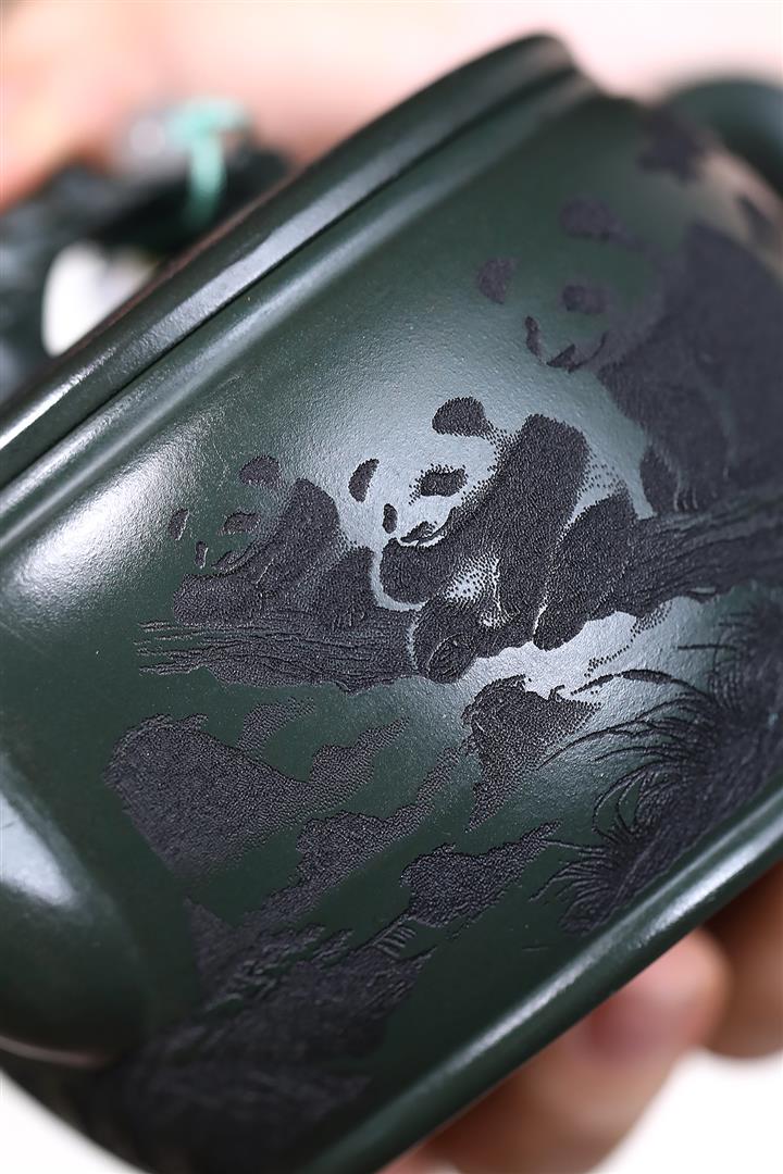臺西墨綠泥熊貓漢瓦茶壺POT7688