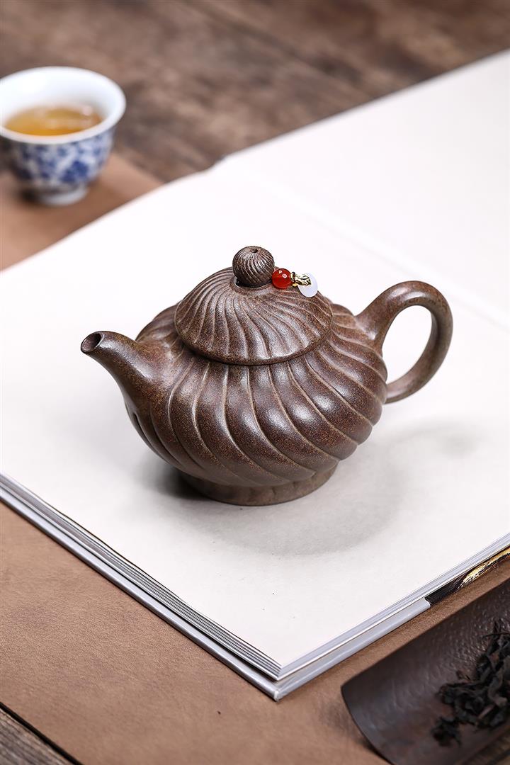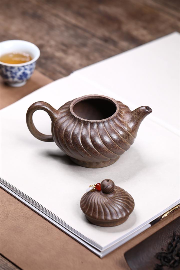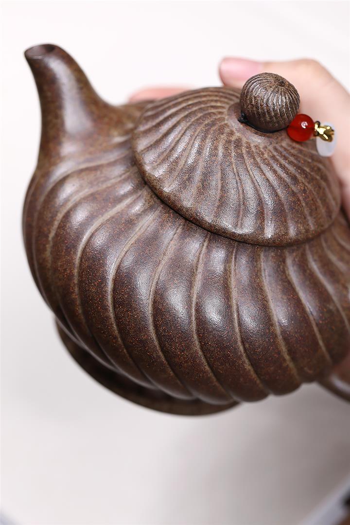 原礦降坡泥刻繪筋紋荷趣茶壺POT7748