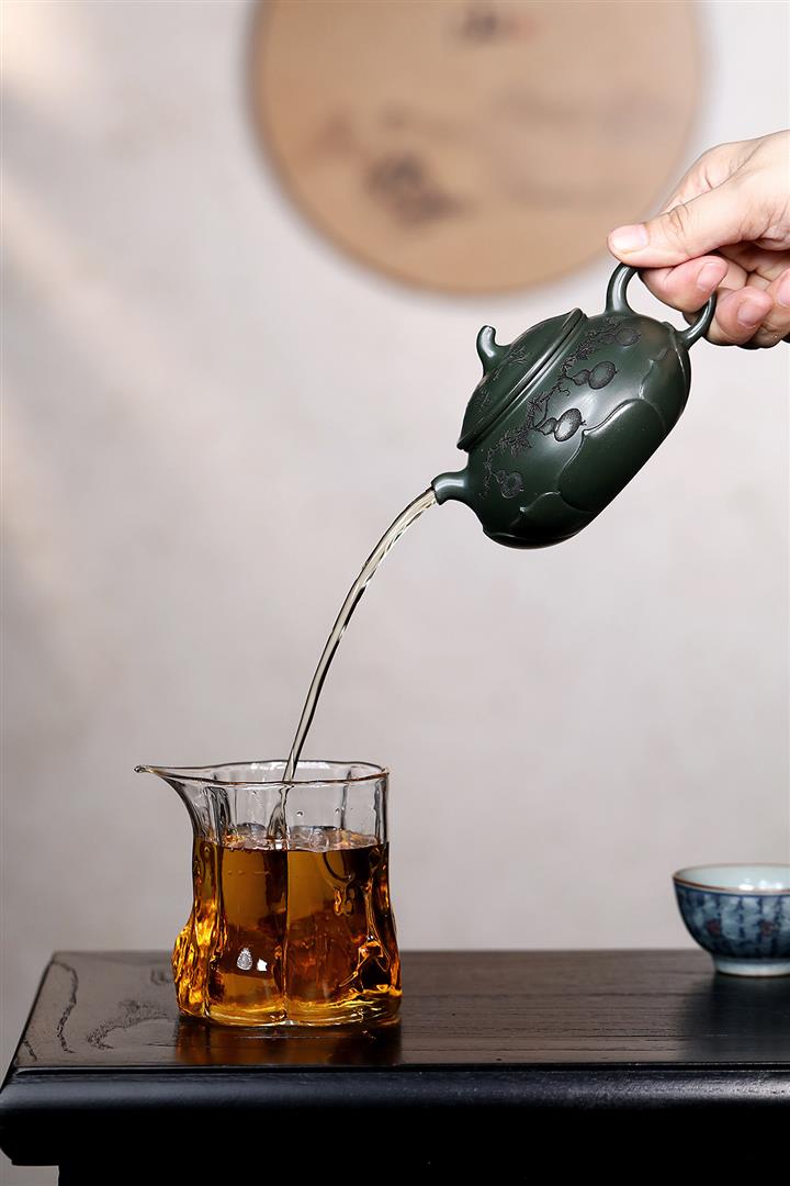 【泥料特點】砂土氣重,似淳實農民,日久使用,漸露鋒芒,養成變化,溫潤莊重。紫砂是壹種雙重氣孔結構的多孔性材質,氣孔微細,密度高。用紫砂壺沏茶,不失原味,且香不渙散,得茶之真香真味。紫砂使用越久,壺身色澤越發光亮照人,氣韻溫雅。紫砂壺長久使用器身會因撫摸擦拭,變得越發溫潤光澤。