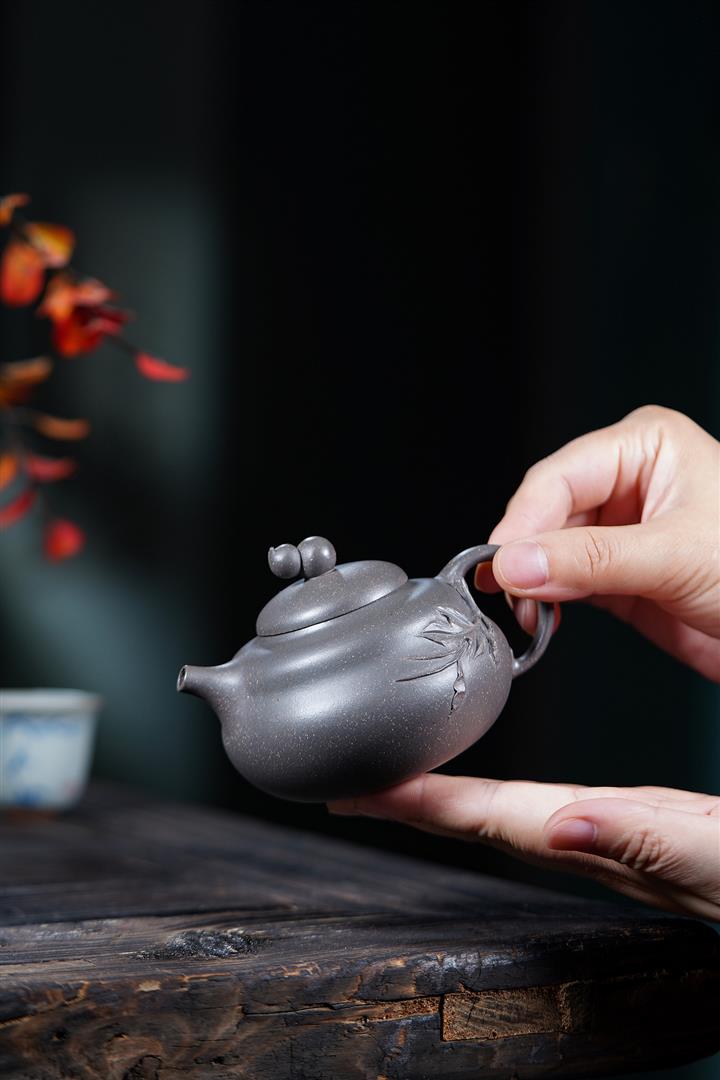 【作品介紹】此款壺形線條流暢,壺把,壺嘴,壺身壹氣呵成栩栩如生,是收藏把玩的好壺,泥料色澤古樸典雅,日久使用,漸露鋒芒,養成變化快,溫潤莊重,用其泡茶,使用的年代久,壺身就溫潤,泡出來的茶湯也就醇郁芳馨。