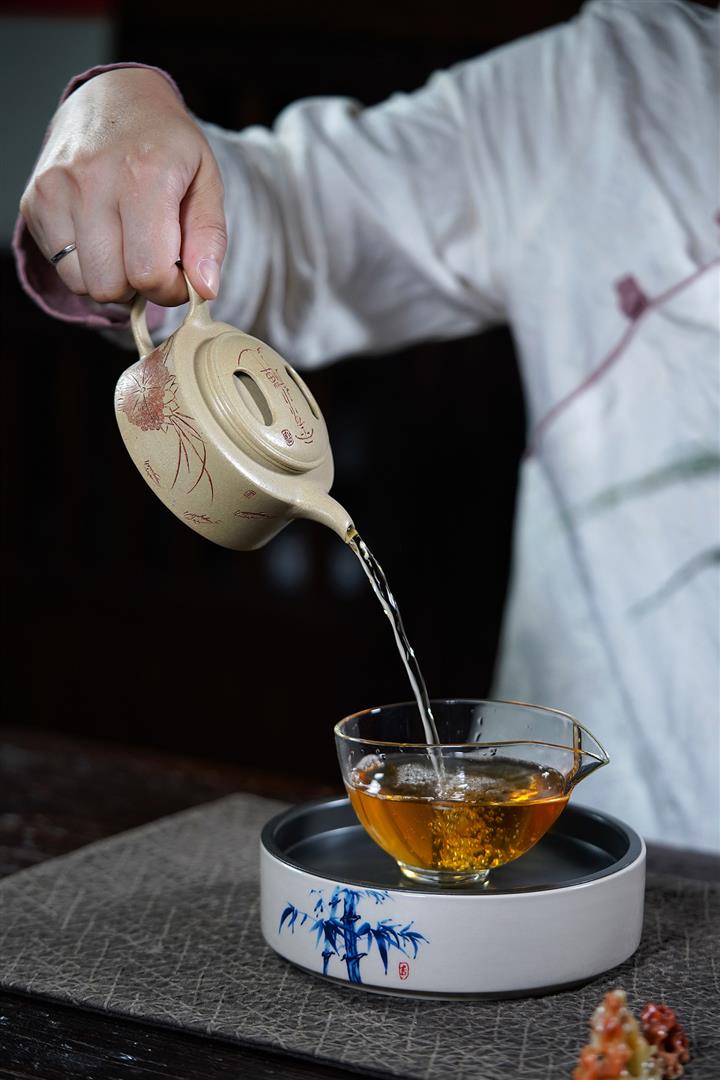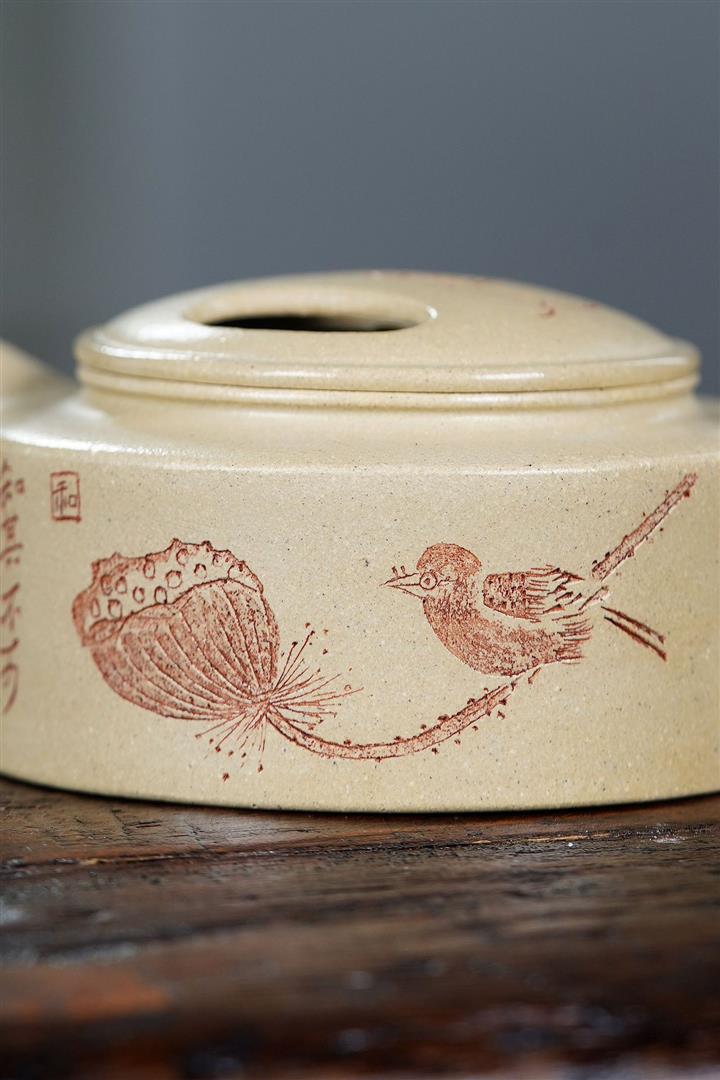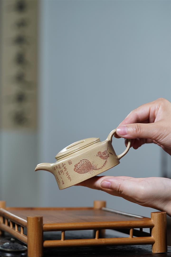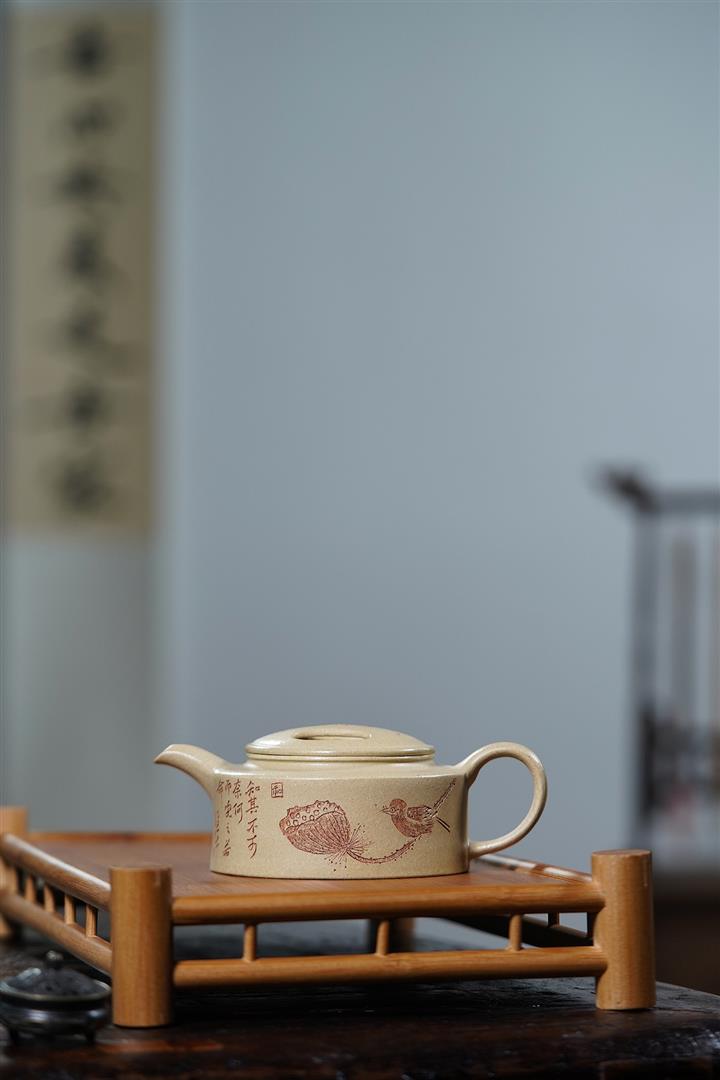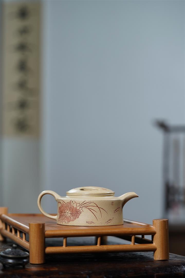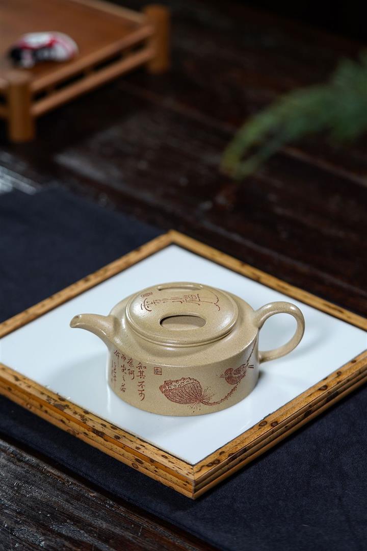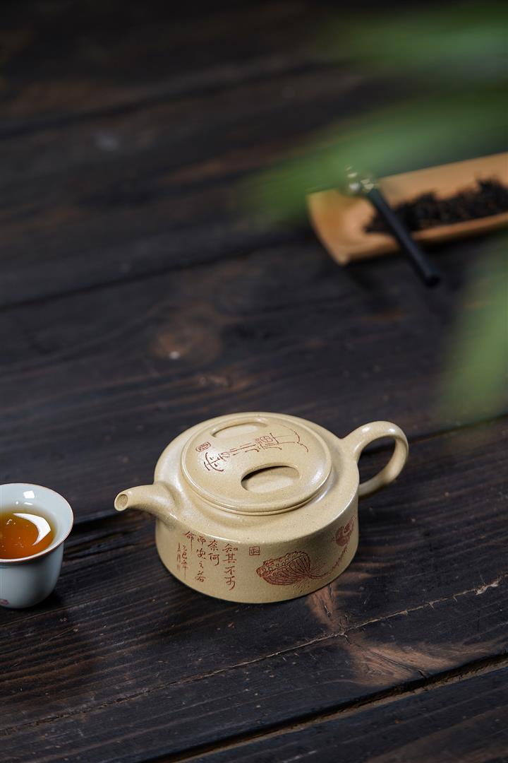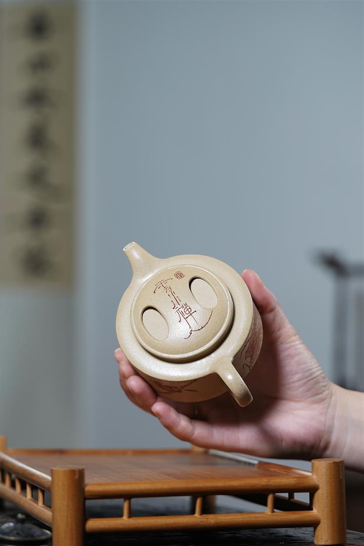 【泥料特點】砂土氣重,似淳實農民,日久使用,漸露鋒芒,養成變化,溫潤莊重。紫砂是壹種雙重氣孔結構的多孔性材質,氣孔微細,密度高。用紫砂壺沏茶,不失原味,且香不渙散,得茶之真香真味。紫砂使用越久,壺身色澤越發光亮照人,氣韻溫雅。紫砂壺長久使用器身會因撫摸擦拭,變得越發溫潤光澤。