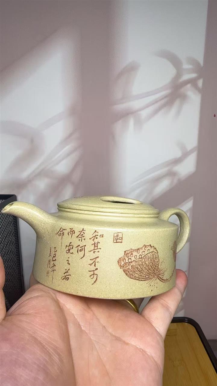 【作品介紹】此款壺形線條流暢,壺把,壺嘴,壺身壹氣呵成栩栩如生,是收藏把玩的好壺,泥料色澤古樸典雅,日久使用,漸露鋒芒,養成變化快,溫潤莊重,用其泡茶,使用的年代久,壺身就溫潤,泡出來的茶湯也就醇郁芳馨。