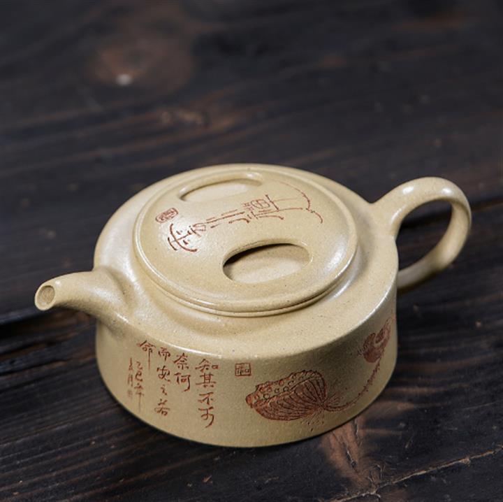原礦石黃笠帽水平名家手制茶壺POT7777