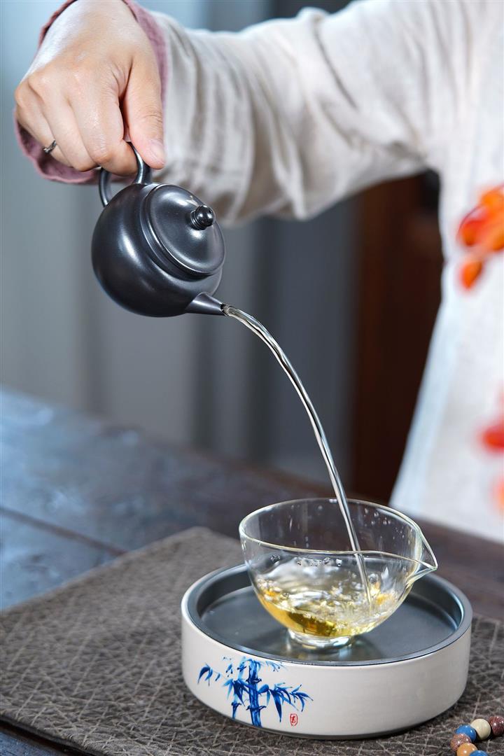 【泥料特點】砂土氣重,似淳實農民,日久使用,漸露鋒芒,養成變化,溫潤莊重。紫砂是壹種雙重氣孔結構的多孔性材質,氣孔微細,密度高。用紫砂壺沏茶,不失原味,且香不渙散,得茶之真香真味。紫砂使用越久,壺身色澤越發光亮照人,氣韻溫雅。紫砂壺長久使用器身會因撫摸擦拭,變得越發溫潤光澤。