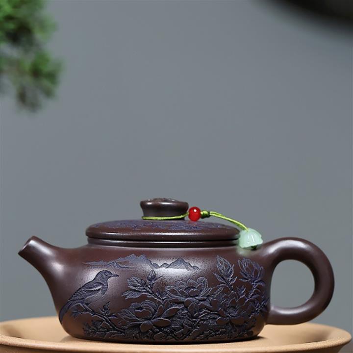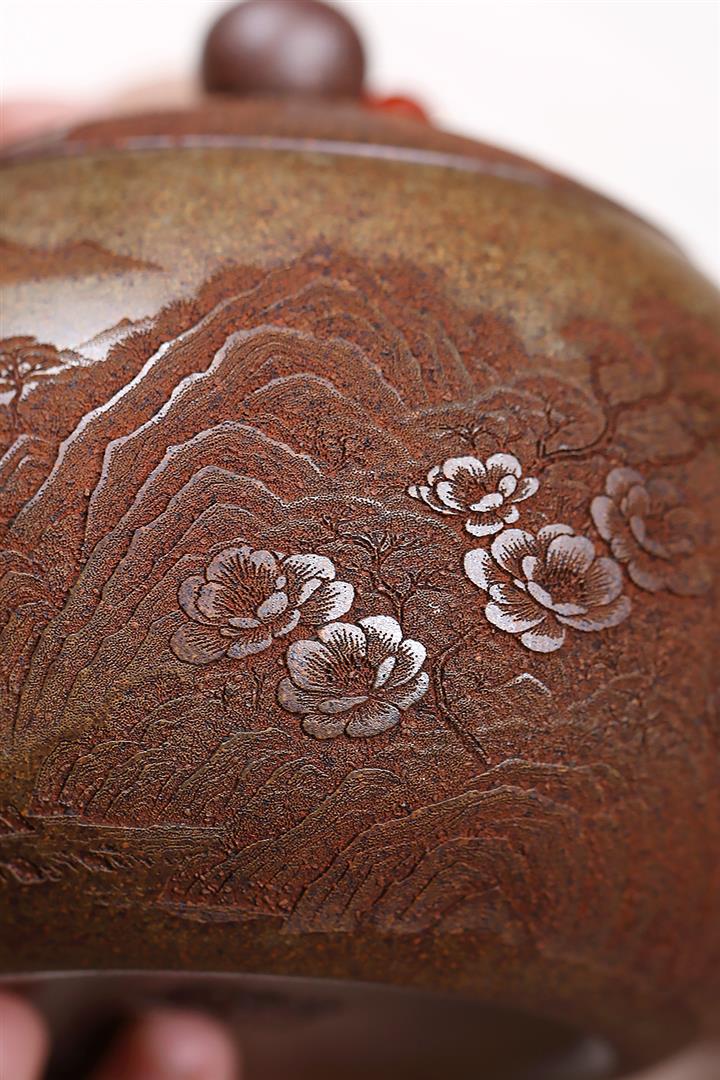 原礦紫泥刻繪山水德鐘茶壺POT7787