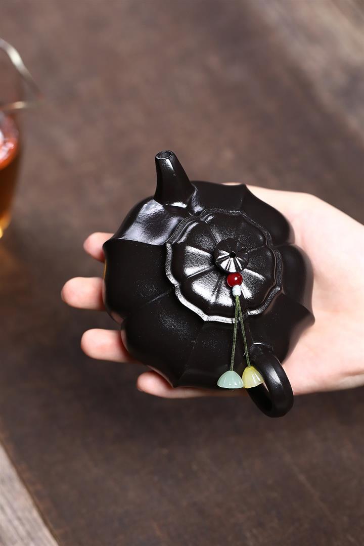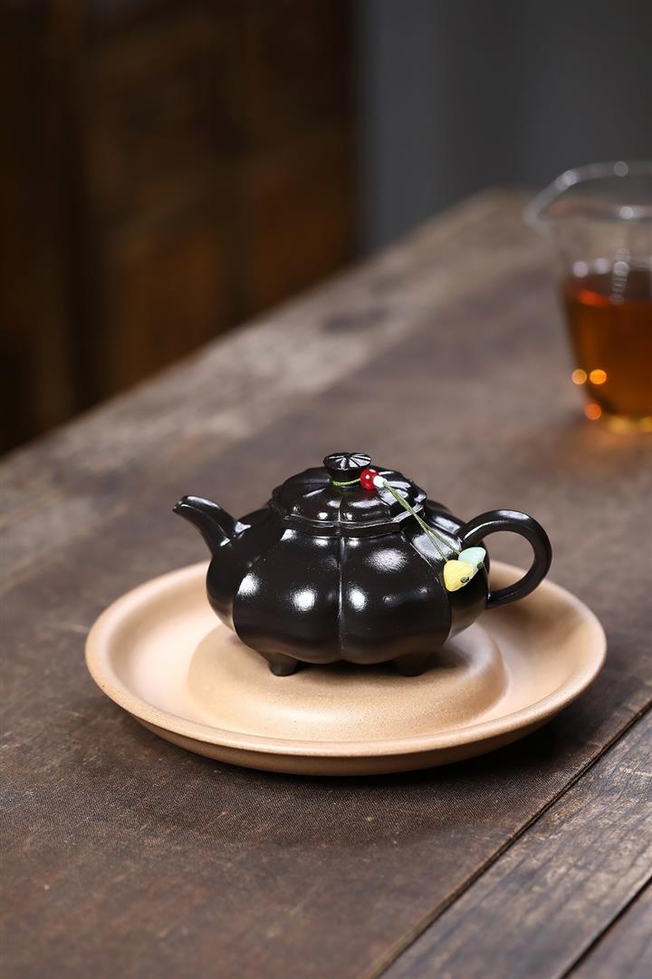 原礦綠泥荷趣生財如意漢瓦茶壺POT7791