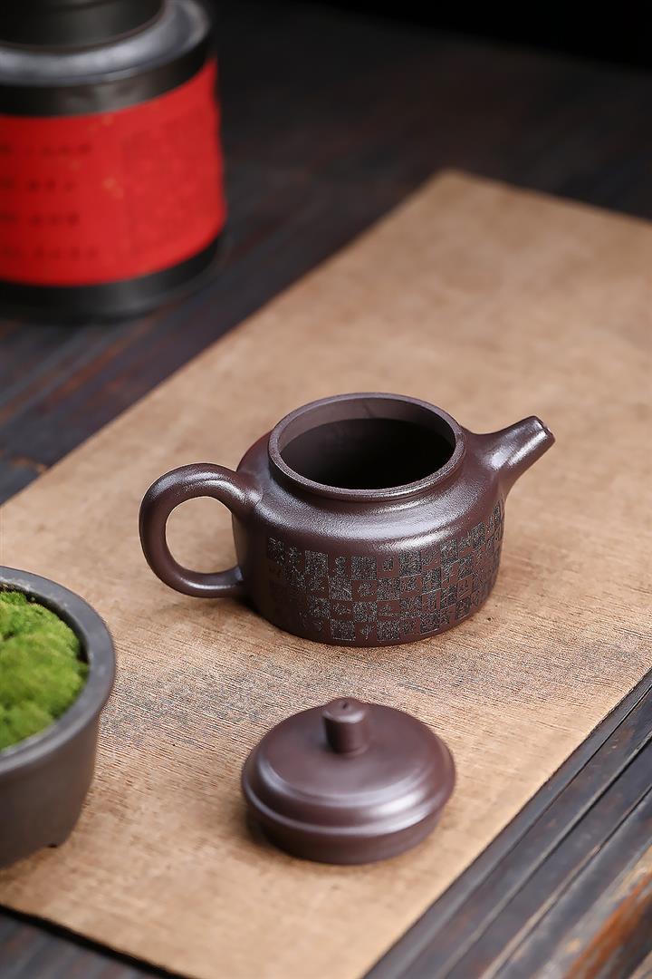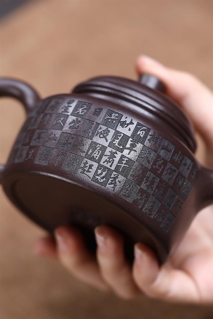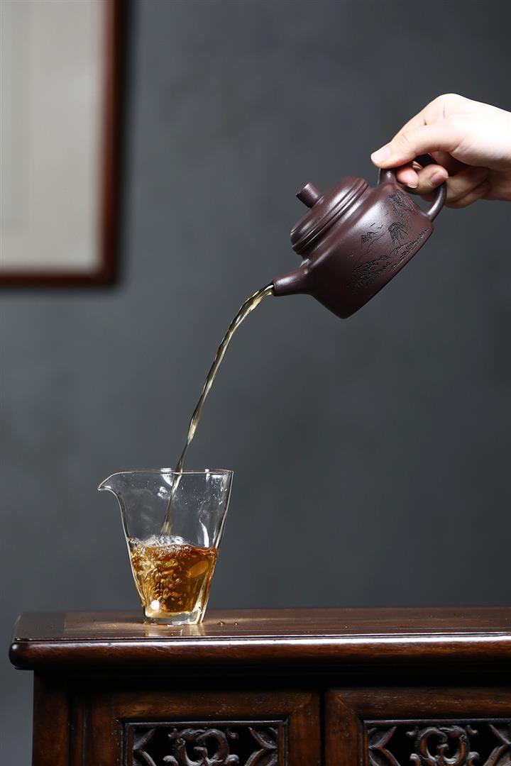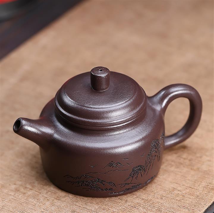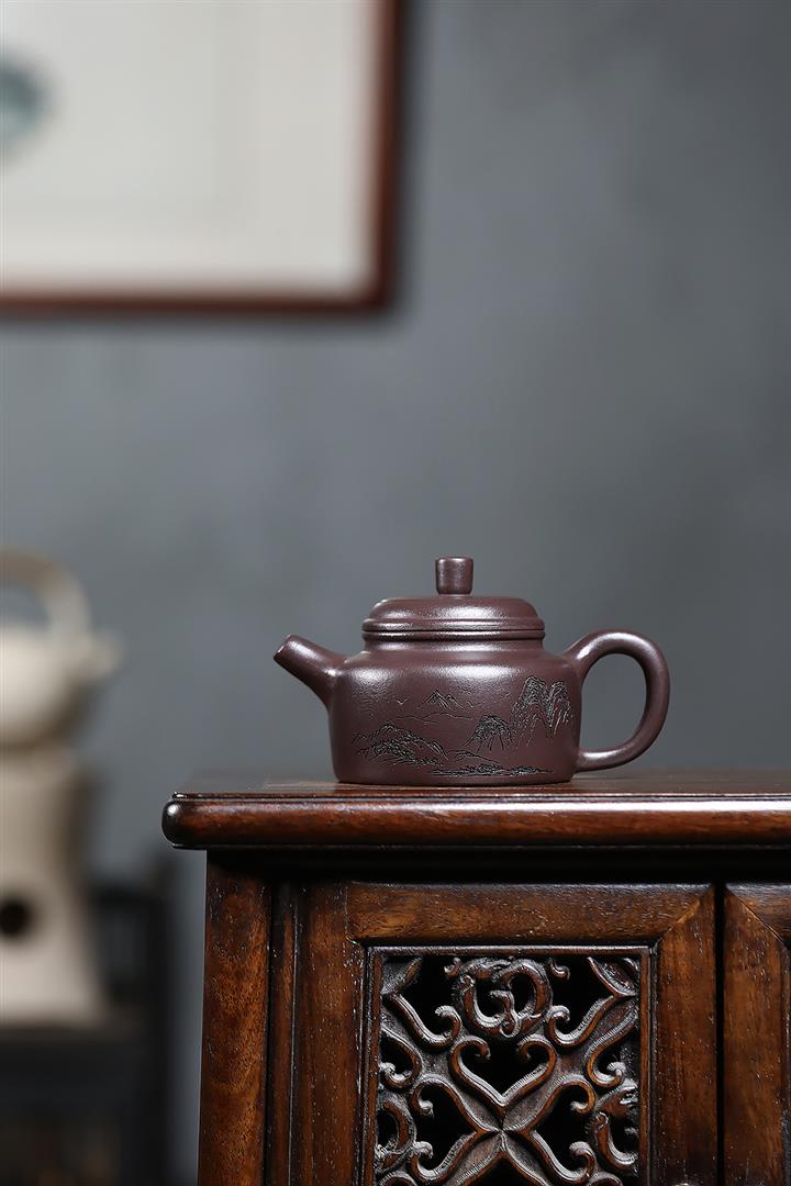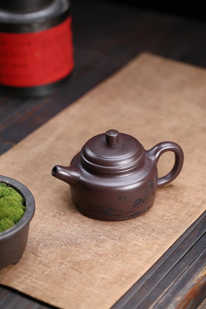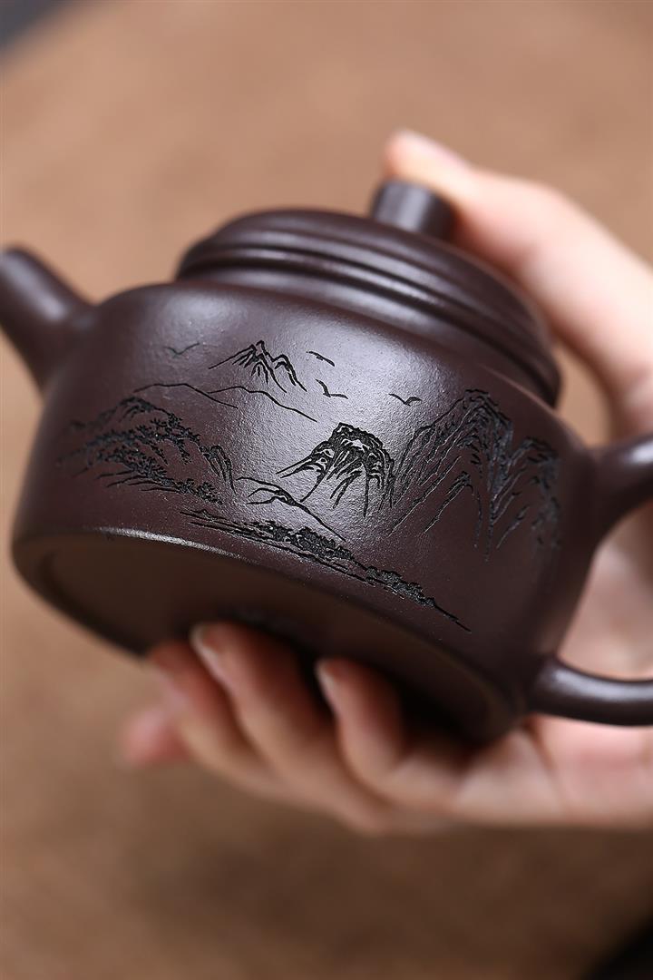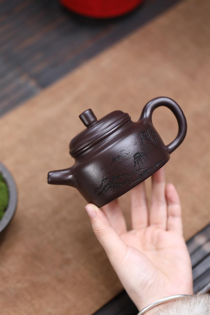 原礦紫泥刻繪山水德鐘茶壺POT7787
