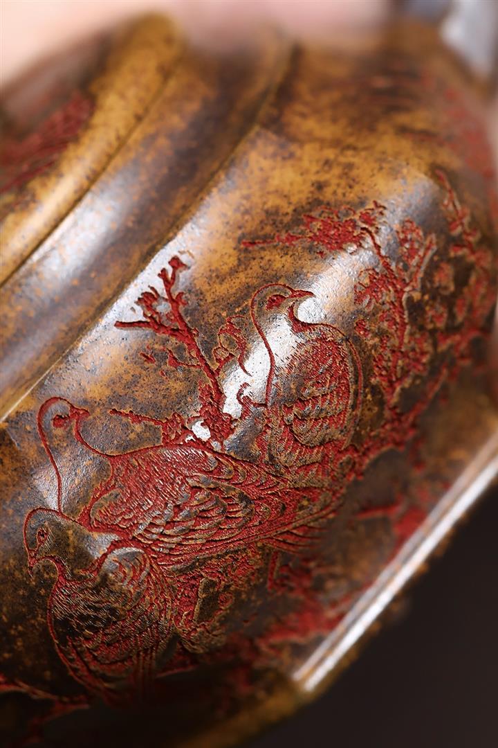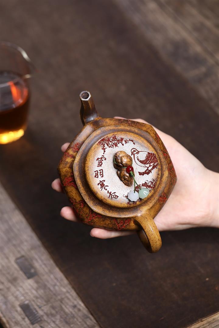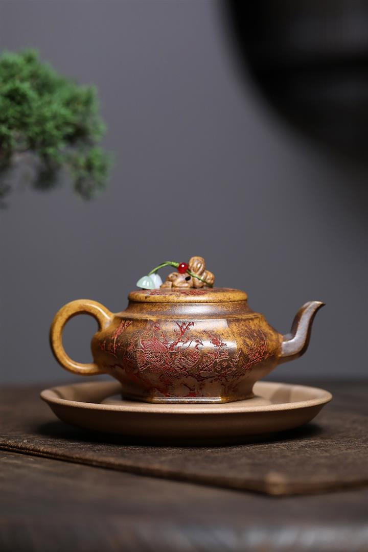 原礦龍骨金砂滿刻六方茶壺POT7725