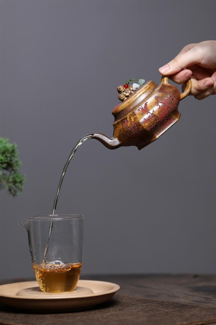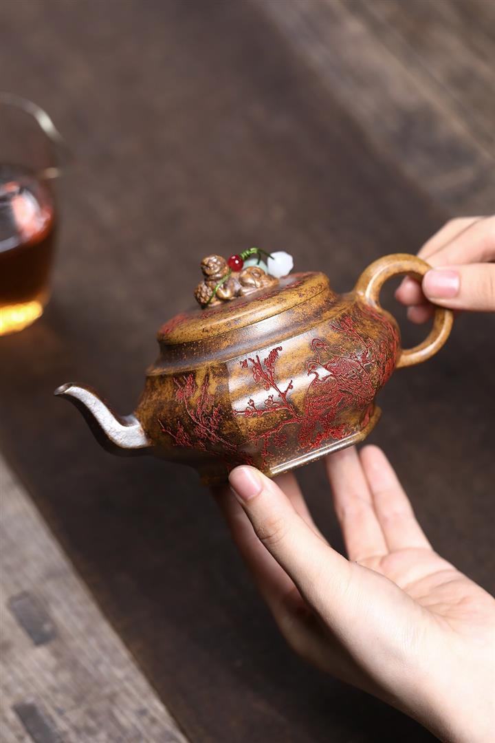 紫砂使用越久,壺身色澤越發光亮照人,氣韻溫雅。紫砂壺長久使用器身會因撫摸擦拭,變得越發溫潤光澤!