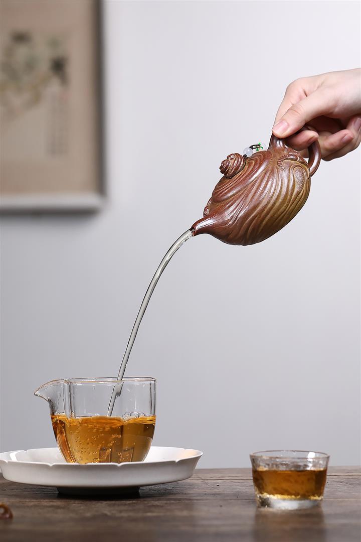 【作品介紹】此款壺形線條流暢,壺把,壺嘴,壺身壹氣呵成栩栩如生,是收藏把玩的好壺,泥料色澤古樸典雅,日久使用,漸露鋒芒,養成變化快,溫潤莊重,用其泡茶,使用的年代久,壺身就溫潤,泡出來的茶湯也就醇郁芳馨。