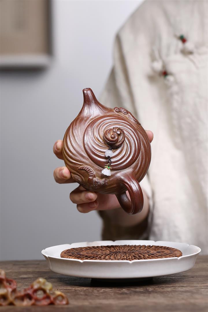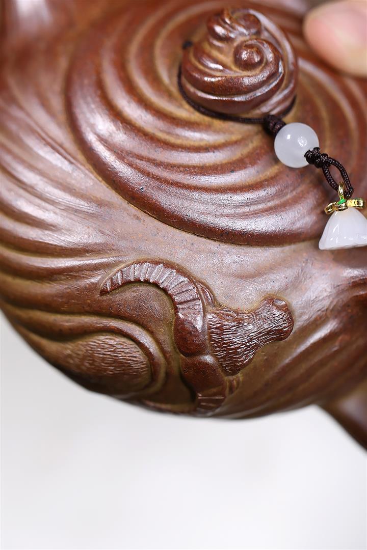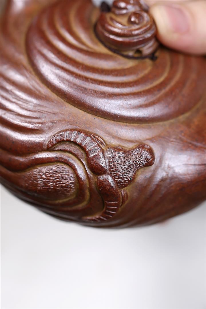 原礦老紫泥浮雕祥龍戲珠茶壺POT7734