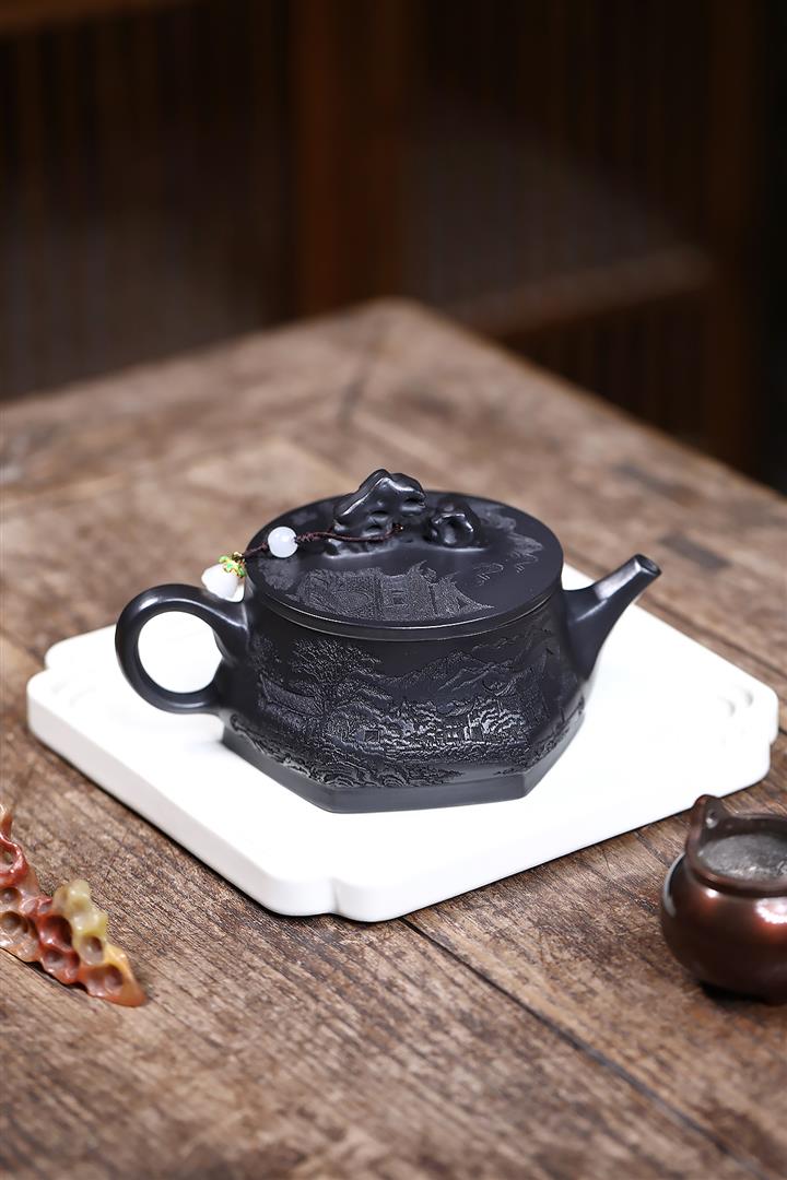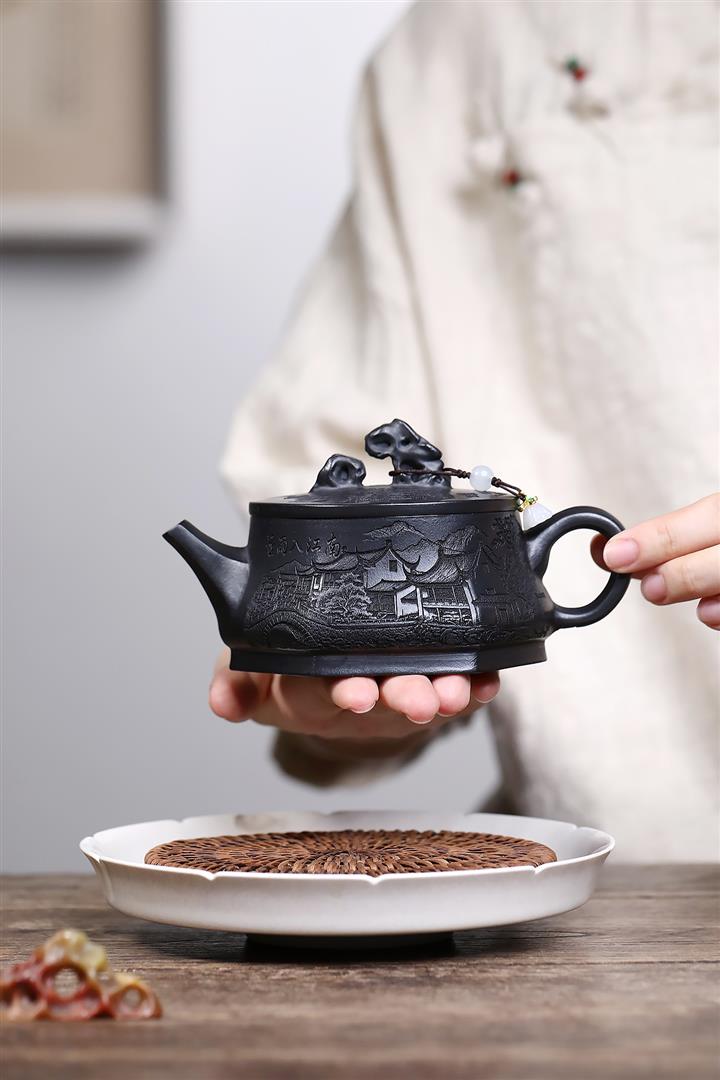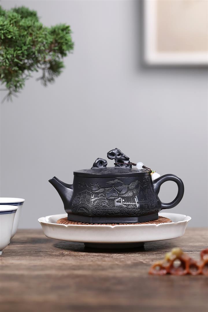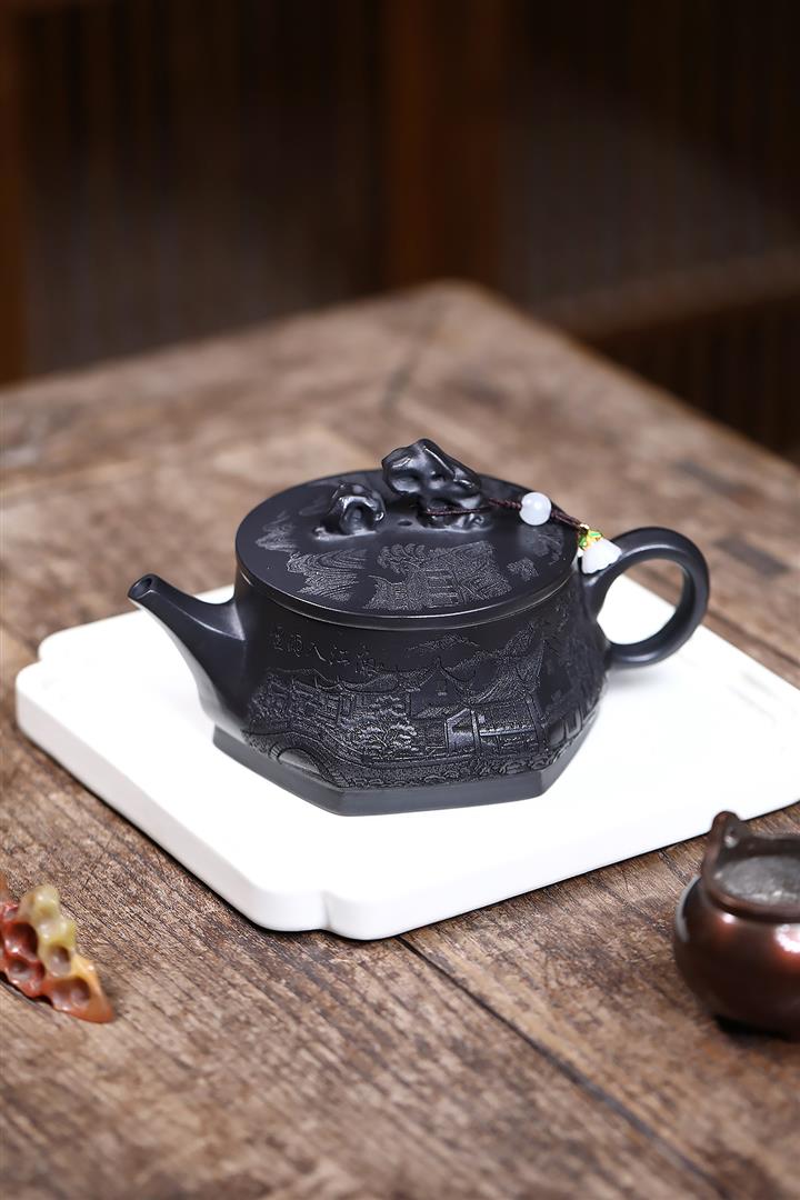 原礦墨綠泥雕龍點睛茶壺POT7736