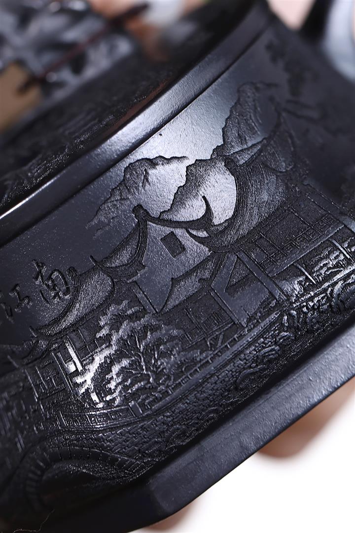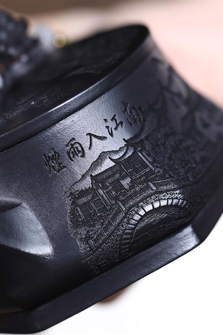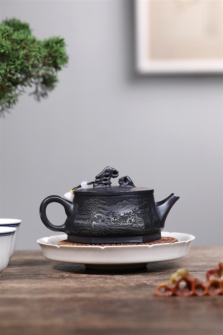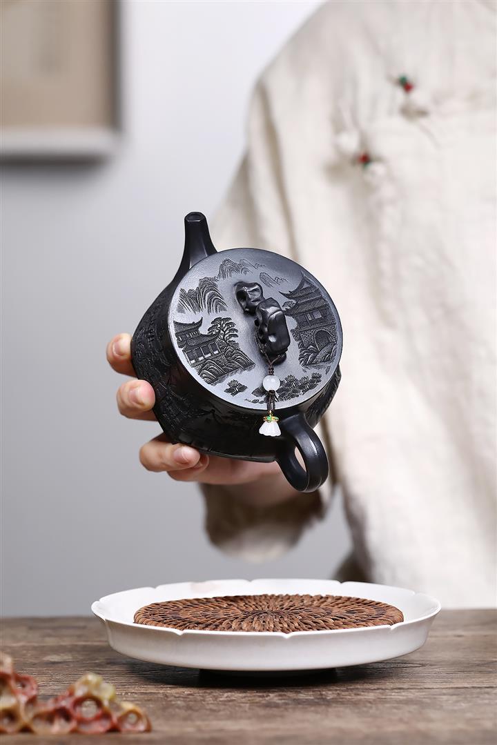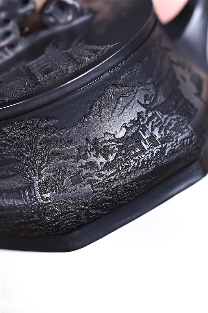 原礦墨綠泥雕龍點睛茶壺POT7736