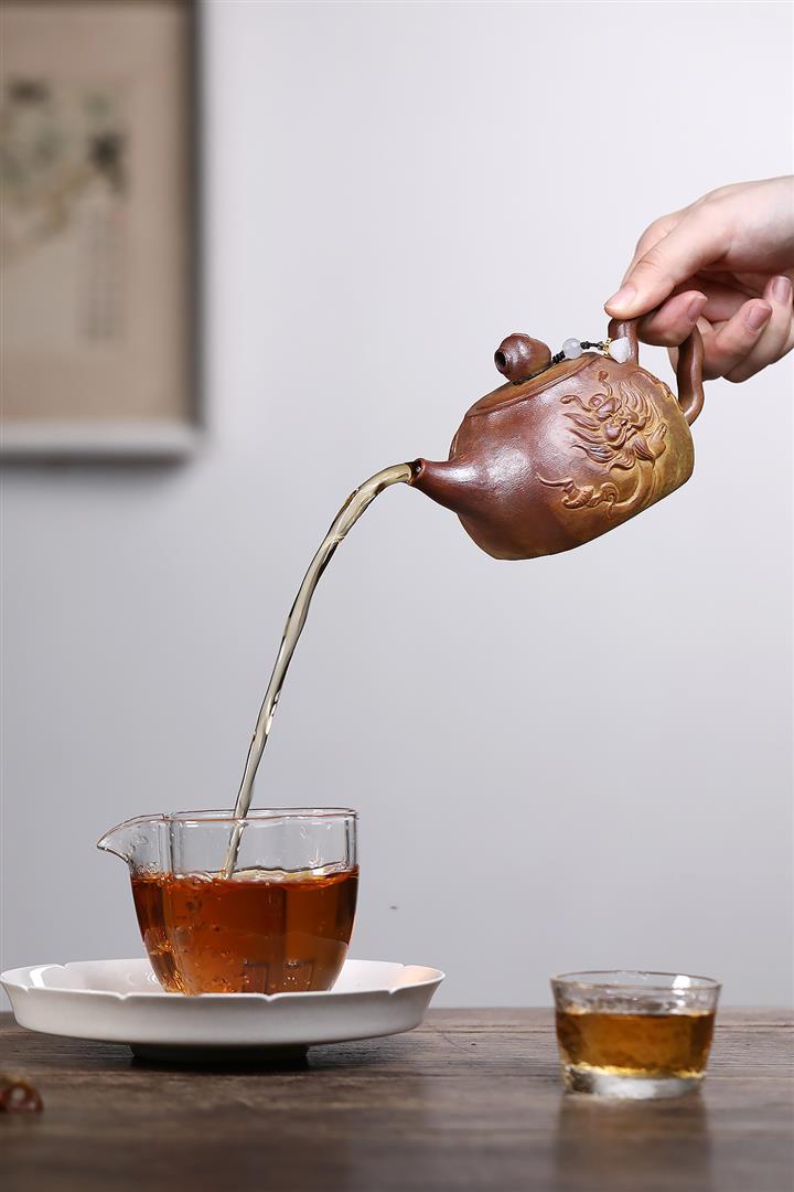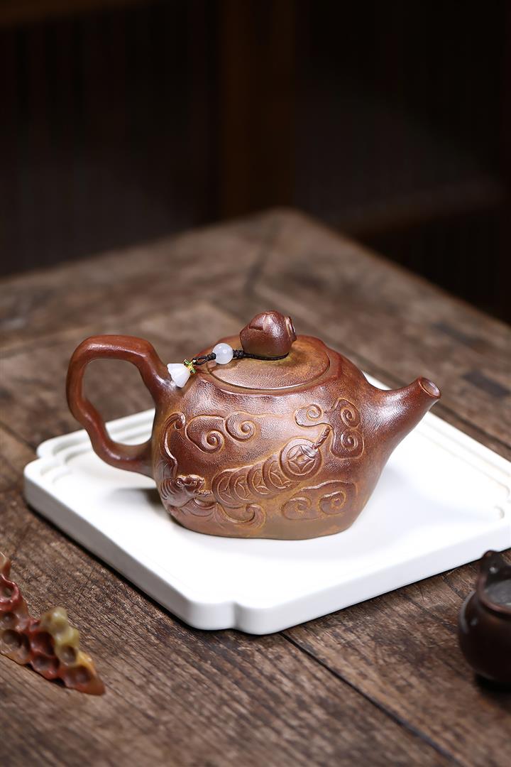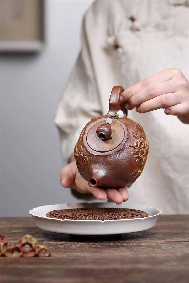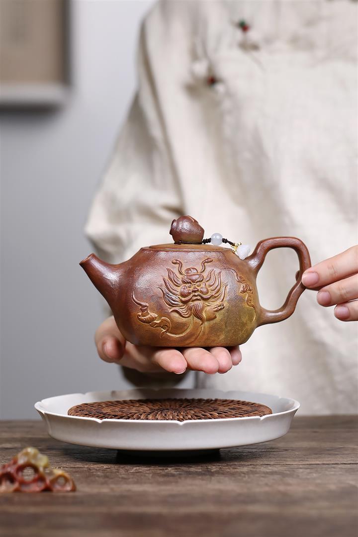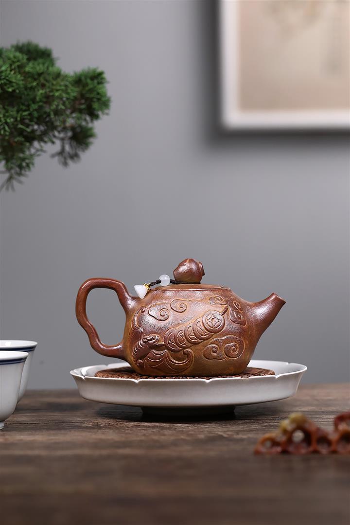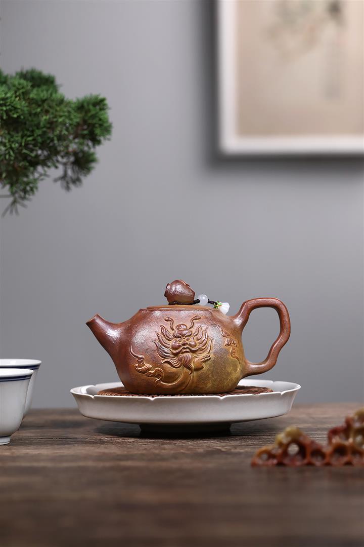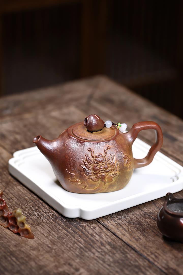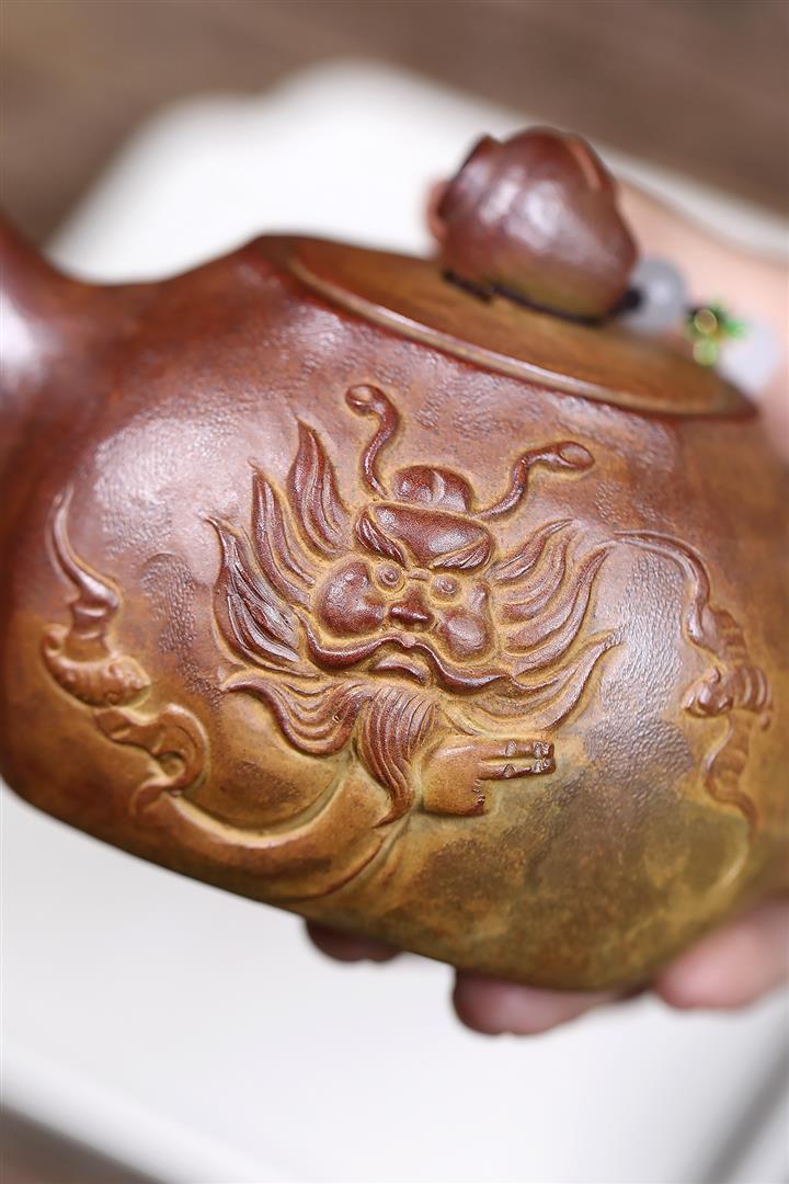 原礦老紫泥浮雕祥龍戲珠茶壺POT7734