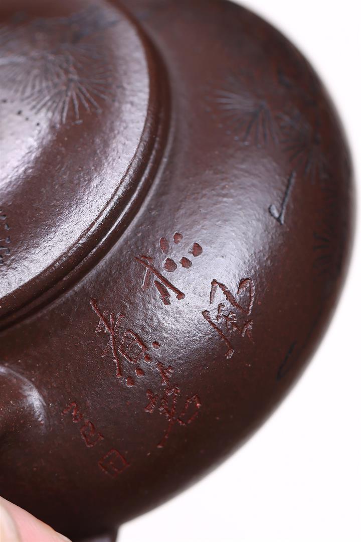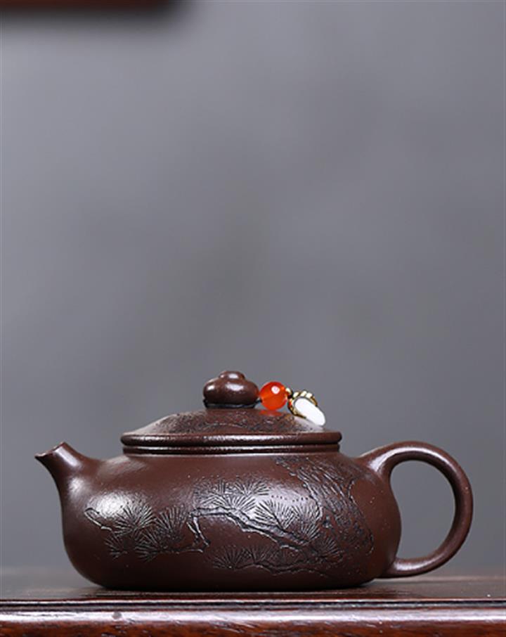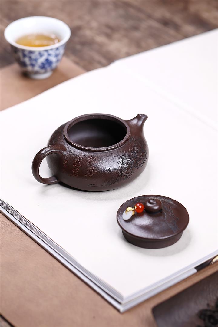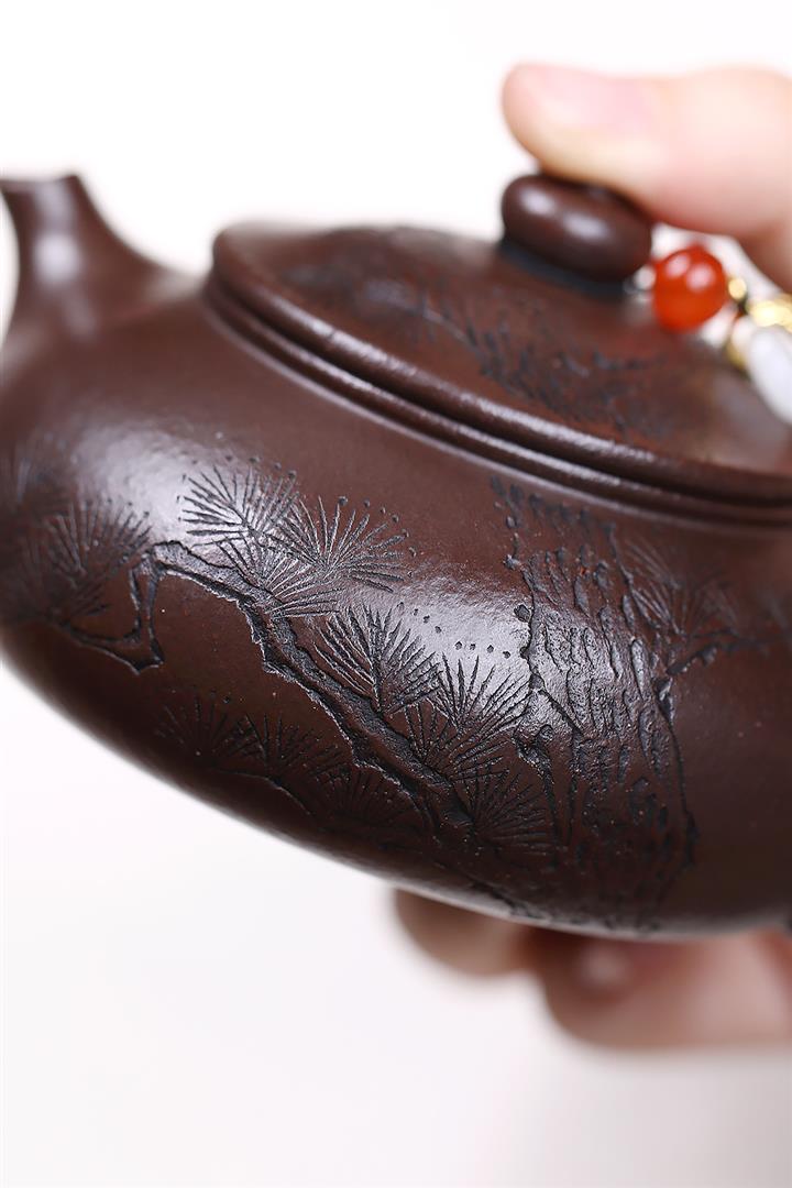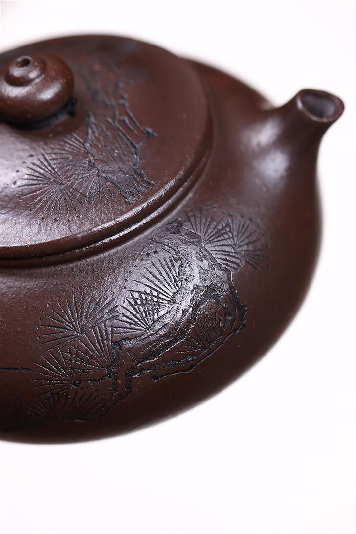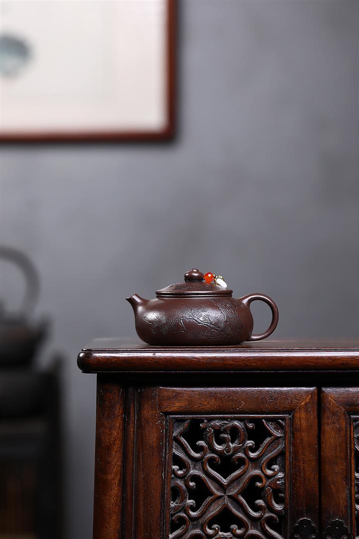 原礦降坡泥刻繪筋紋荷趣茶壺POT7748