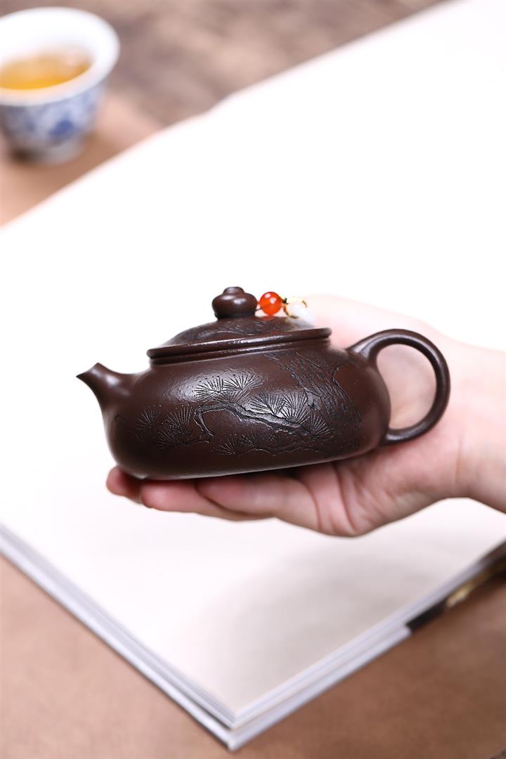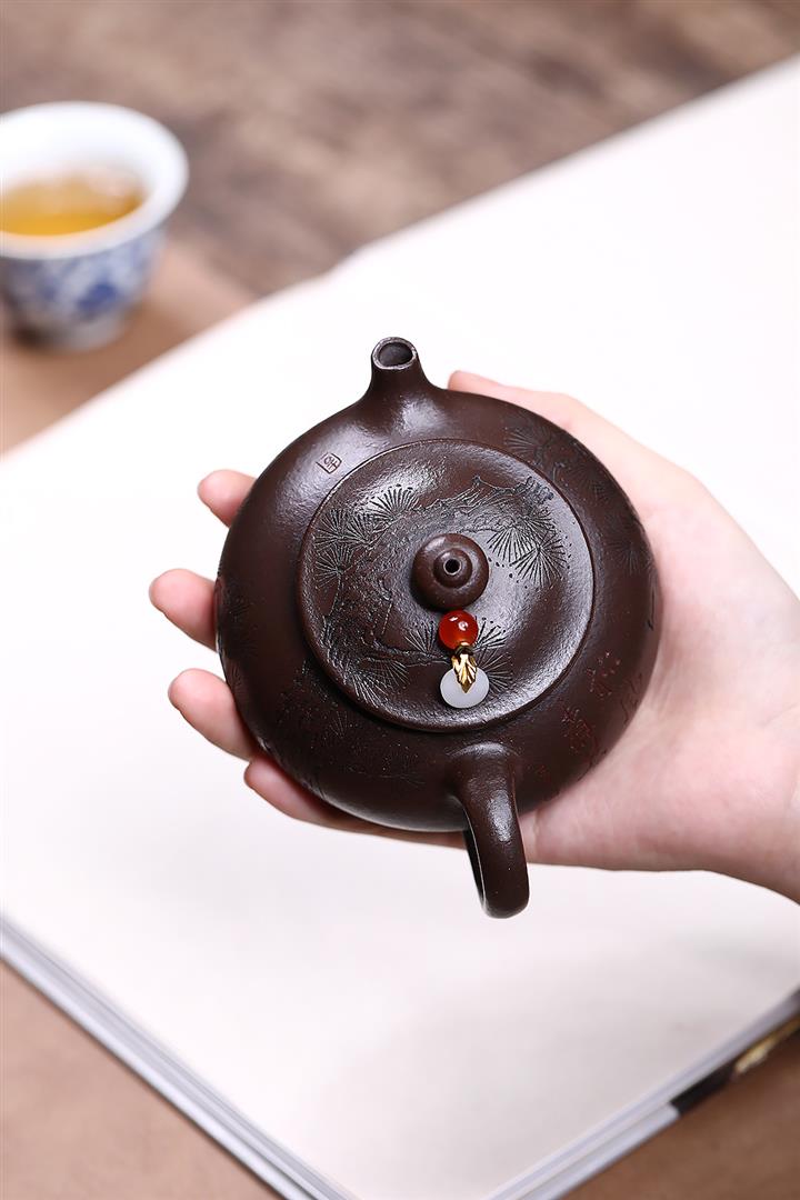 【作品介紹】此款壺形線條流暢,壺把,壺嘴,壺身壹氣呵成栩栩如生,是收藏把玩的好壺,泥料色澤古樸典雅,日久使用,漸露鋒芒,養成變化快,溫潤莊重,用其泡茶,使用的年代久,壺身就溫潤,泡出來的茶湯也就醇郁芳馨。