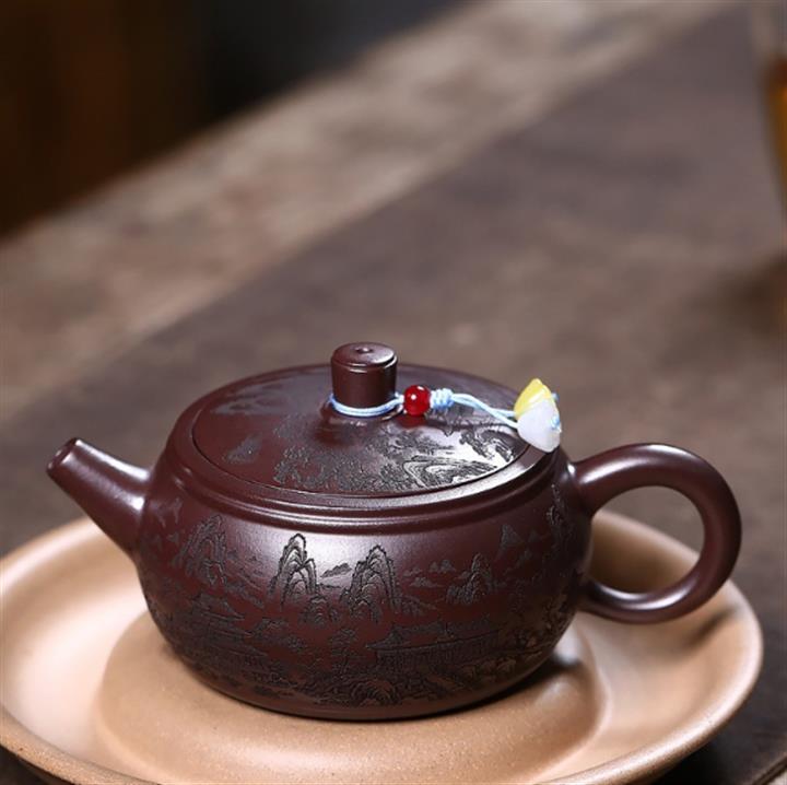 原礦紫泥山水樓閣井欄茶壺POT7916