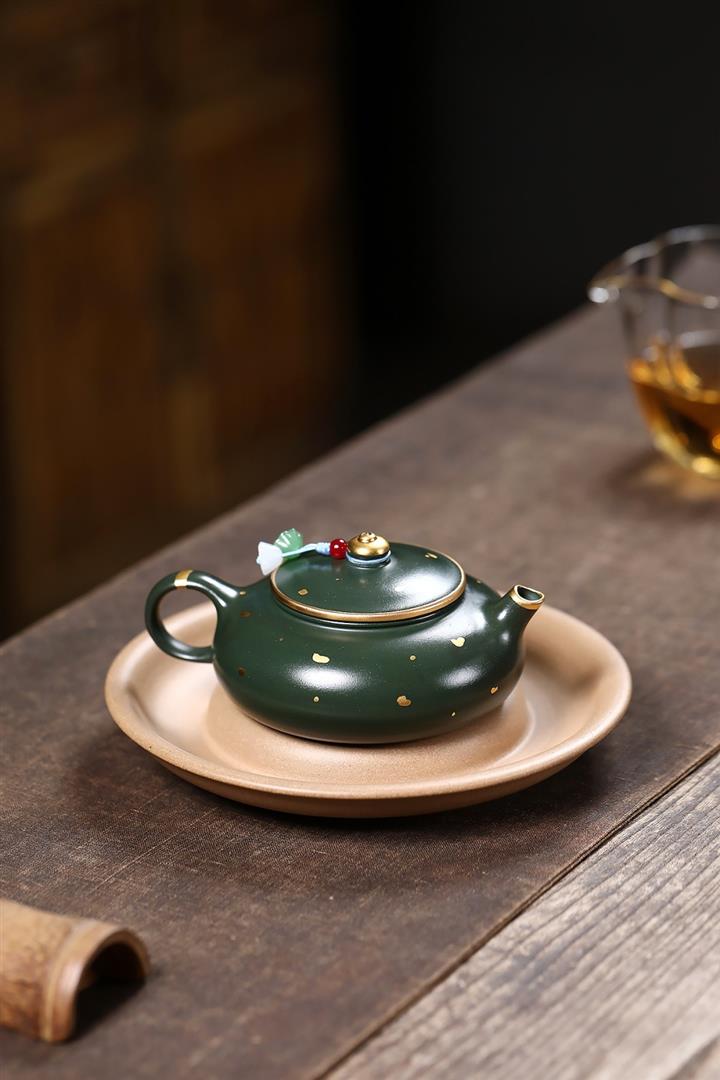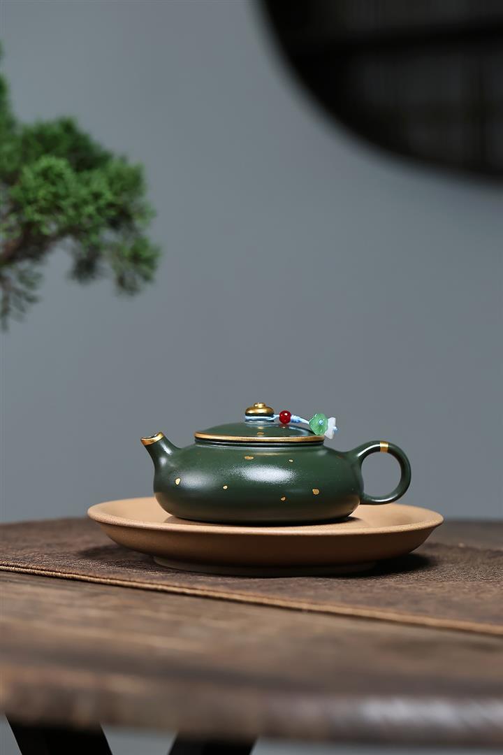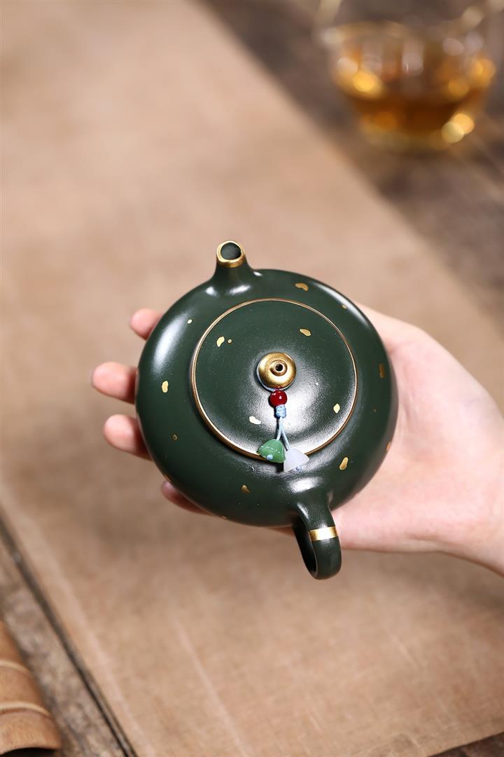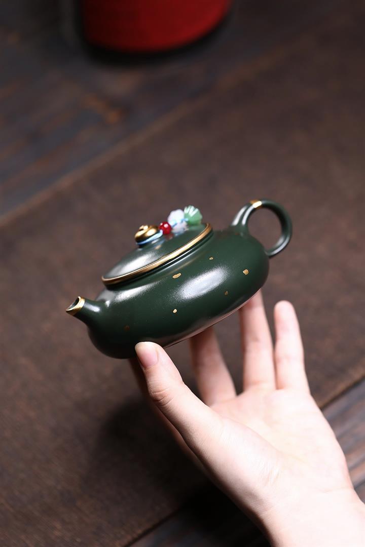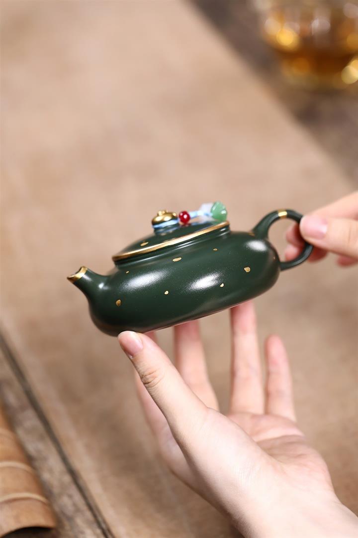 原礦綠泥灑金小品寒江泡茶壺POT7795