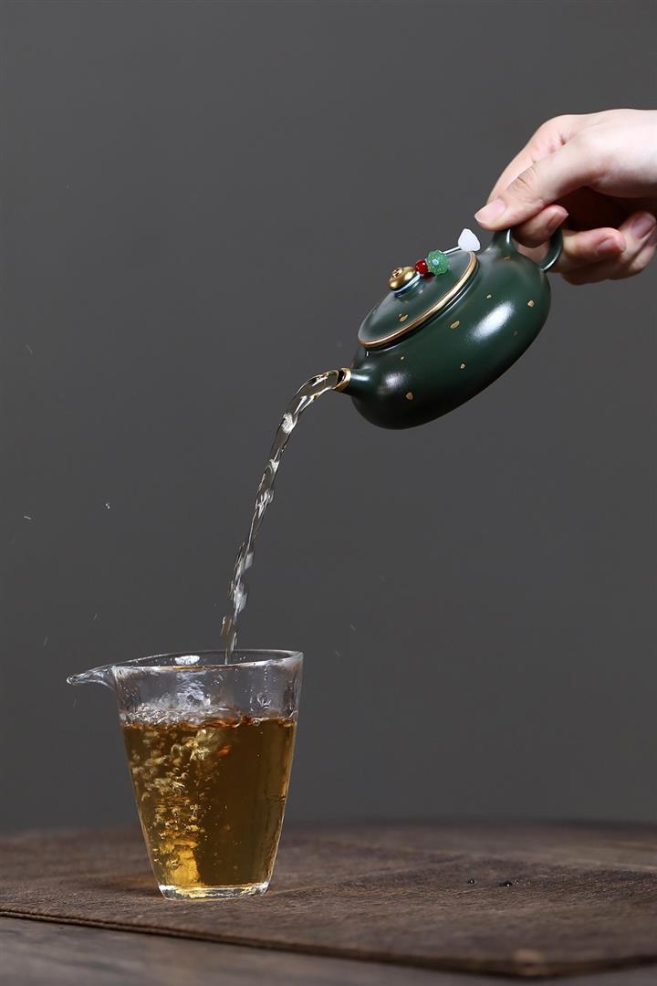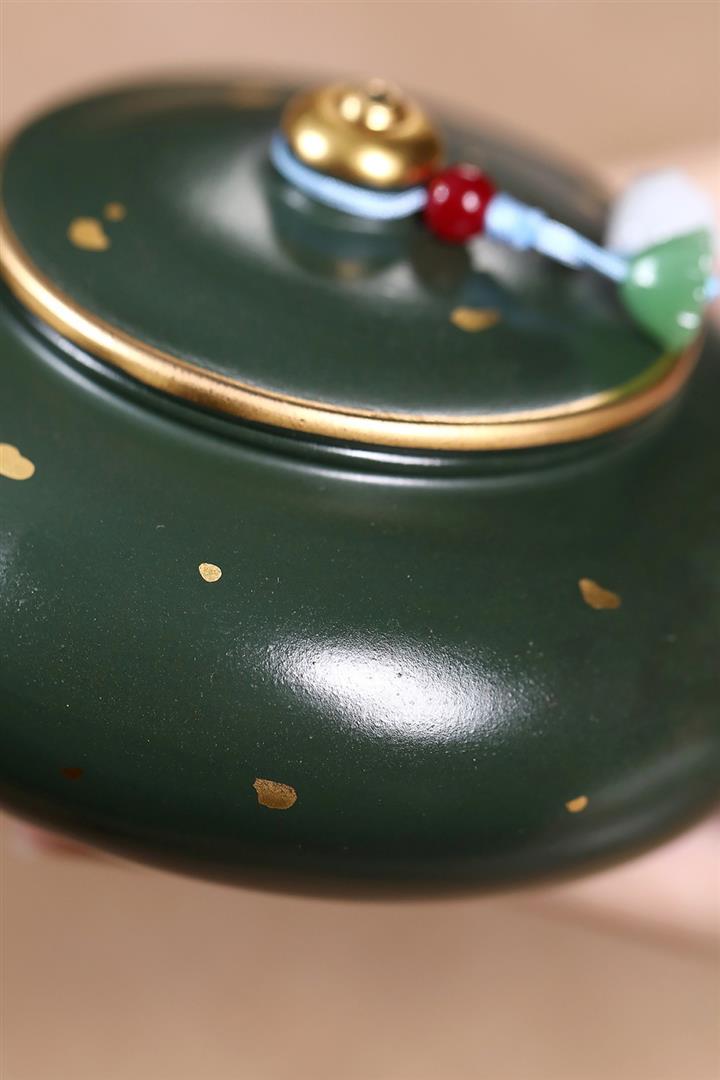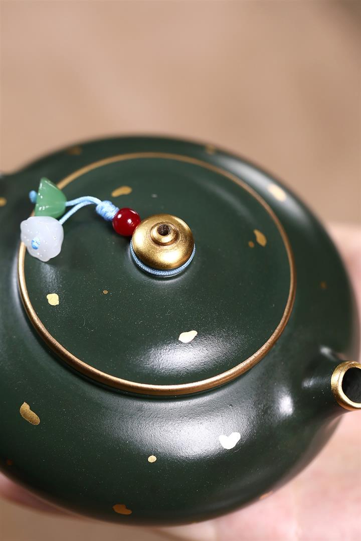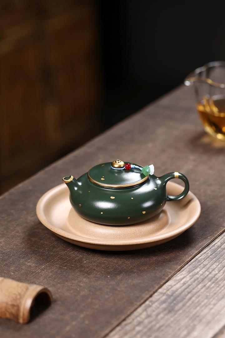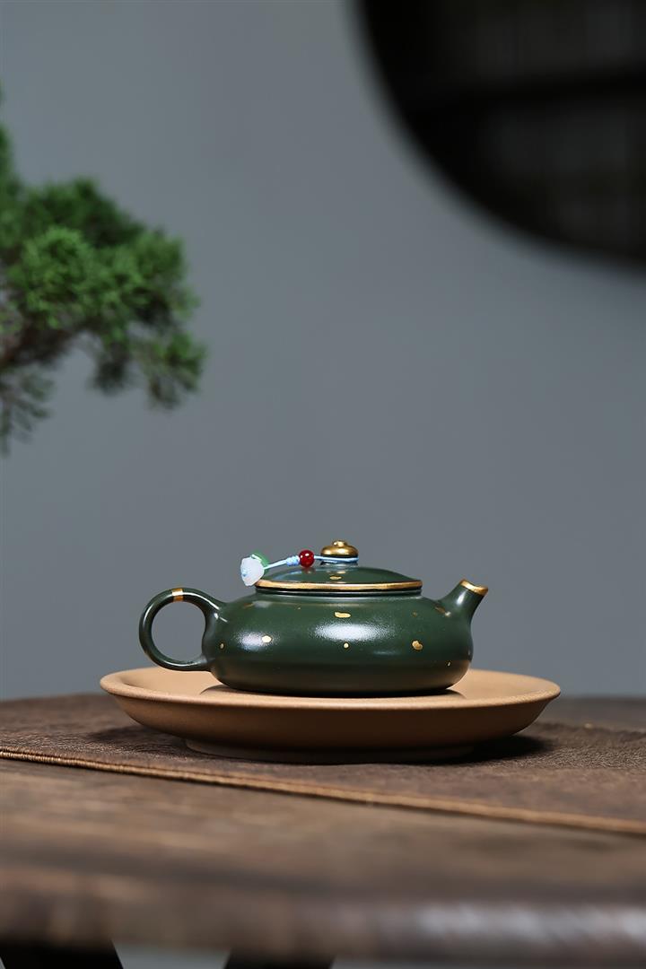 原礦綠泥灑金小品寒江泡茶壺POT7795