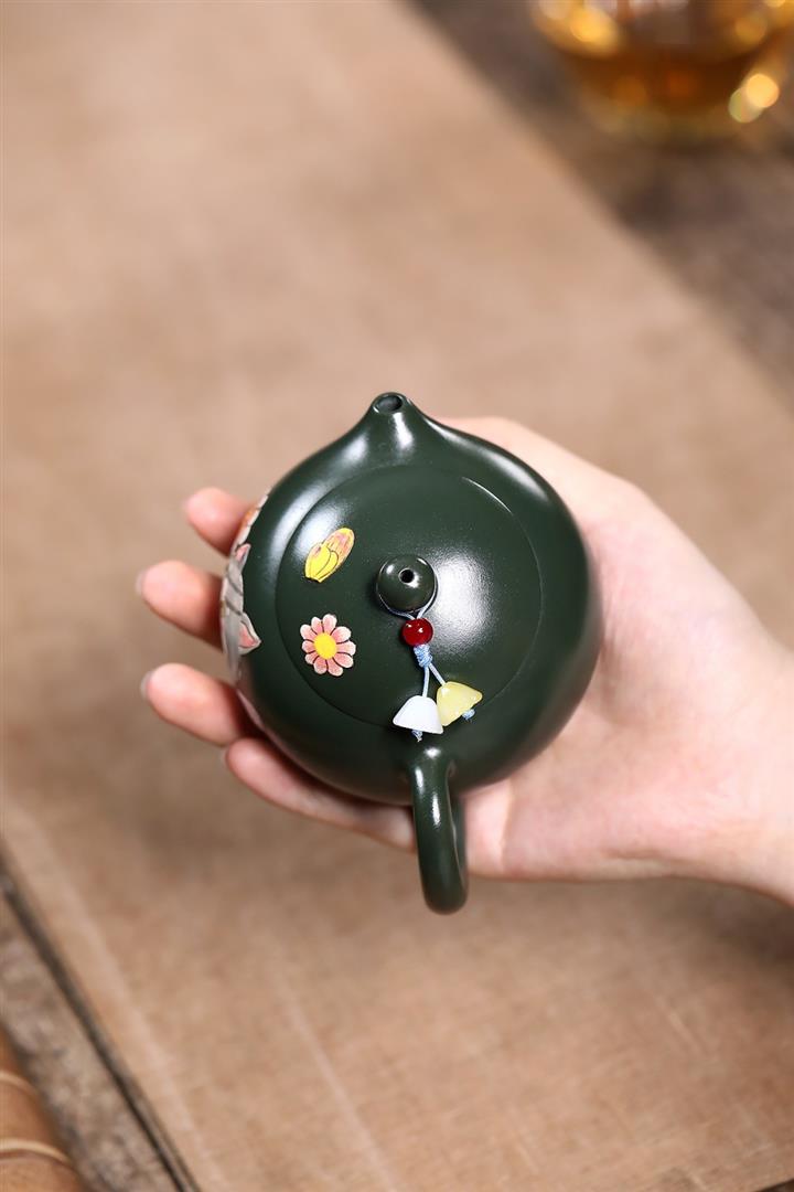 【作品介紹】此款壺形線條流暢,壺把,壺嘴,壺身壹氣呵成栩栩如生,是收藏把玩的好壺,泥料色澤古樸典雅,日久使用,漸露鋒芒,養成變化快,溫潤莊重,用其泡茶,使用的年代久,壺身就溫潤,泡出來的茶湯也就醇郁芳馨。