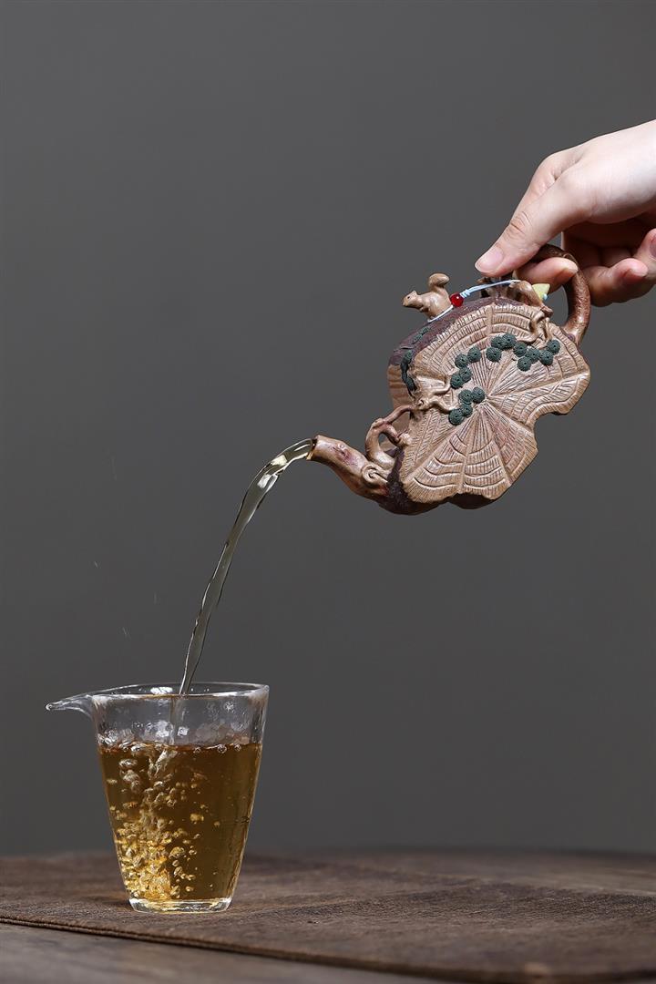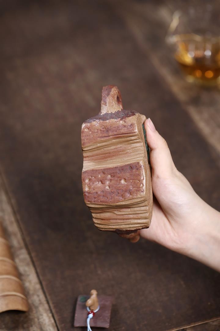 【泥料特點】砂土氣重,似淳實農民,日久使用,漸露鋒芒,養成變化,溫潤莊重。紫砂是壹種雙重氣孔結構的多孔性材質,氣孔微細,密度高。用紫砂壺沏茶,不失原味,且香不渙散,得茶之真香真味。紫砂使用越久,壺身色澤越發光亮照人,氣韻溫雅。紫砂壺長久使用器身會因撫摸擦拭,變得越發溫潤光澤。