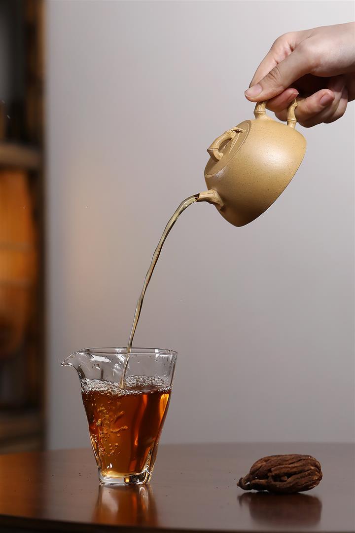 【泥料特點】砂土氣重,似淳實農民,日久使用,漸露鋒芒,養成變化,溫潤莊重。紫砂是壹種雙重氣孔結構的多孔性材質,氣孔微細,密度高。用紫砂壺沏茶,不失原味,且香不渙散,得茶之真香真味。紫砂使用越久,壺身色澤越發光亮照人,氣韻溫雅。紫砂壺長久使用器身會因撫摸擦拭,變得越發溫潤光澤。